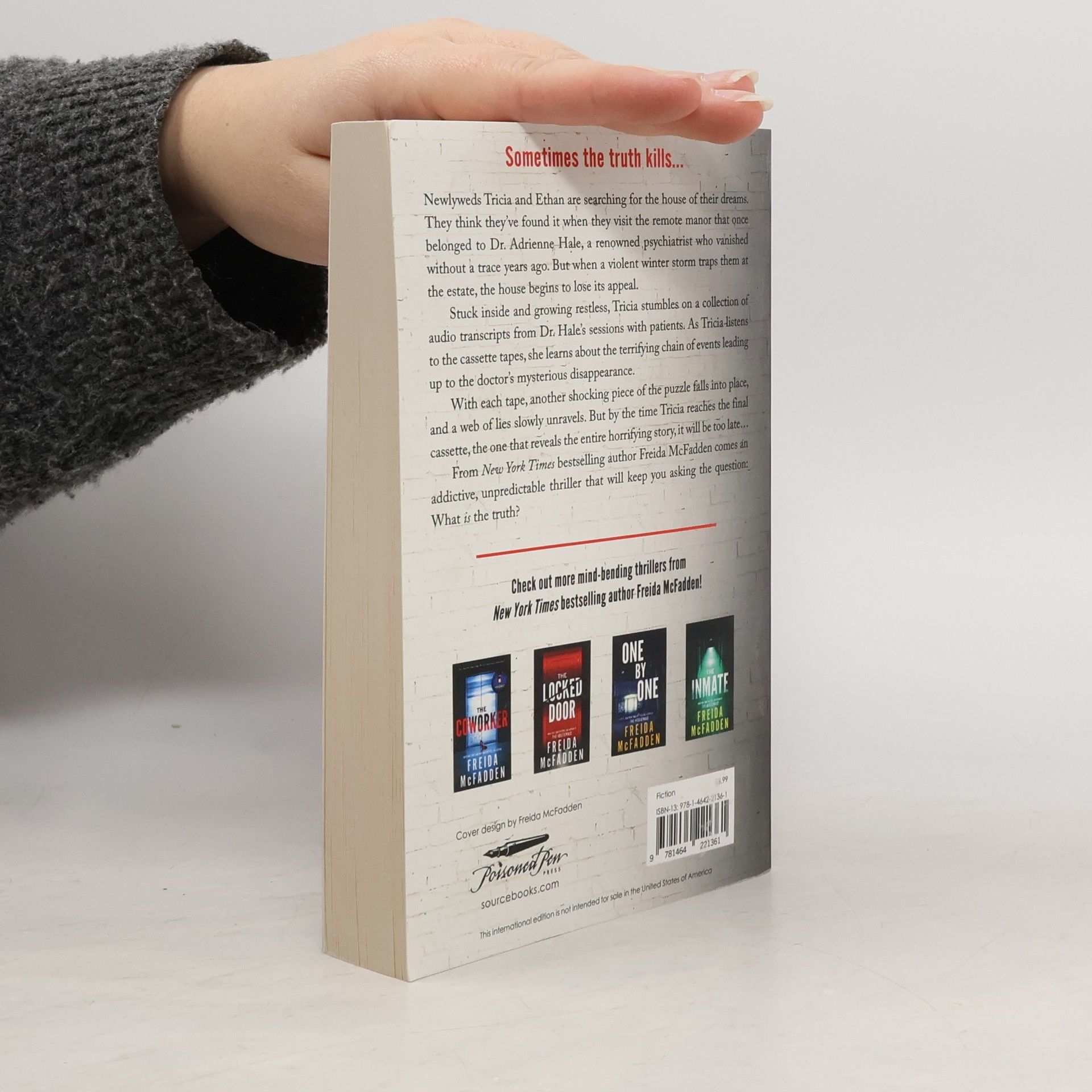 A twisting, pulse-pounding thriller from the Sunday Times bestselling author of The Housemaid and The Coworker! Sometimes the truth kills... Newlyweds Tricia and Ethan are searching for the house of their dreams. They think they've found it when they visit the remote manor that once belonged to Dr. Adrienne Hale, a renowned psychiatrist who vanished without a trace years ago. But when a violent winter storm traps them at the estate, the house begins to lose its appeal. Stuck inside and growing restless, Tricia stumbles on a collection of audio transcripts from Dr. Hale's sessions with patients. As Tricia listens to the cassette tapes, she learns about the terrifying chain of events leading up to the doctor's mysterious disappearance. With each tape, another shocking piece of the puzzle falls into place, and a web of lies slowly unravels. But by the time Tricia reaches the final cassette, the one that reveals the entire horrifying story, it will be too late... From Sunday Times bestselling author Freida McFadden comes an addictive, unpredictable thriller that will keep you asking the question: what is the truth?