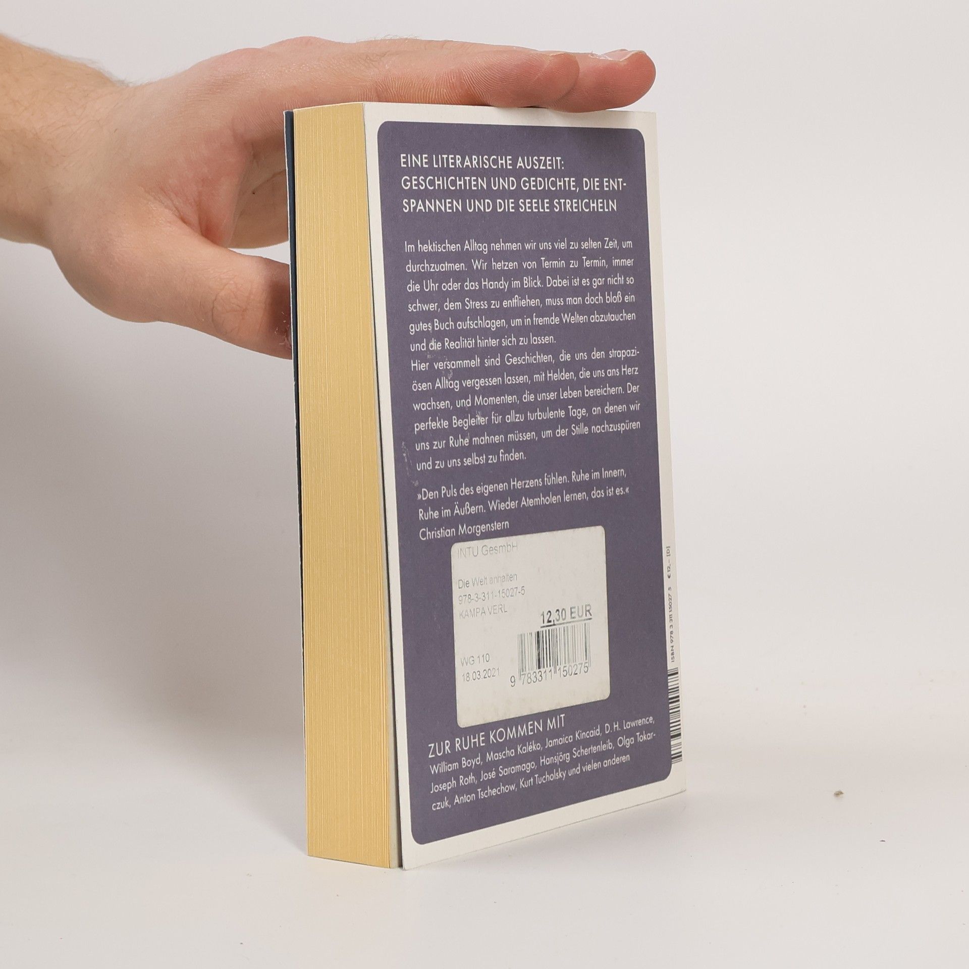 Im hektischen Alltag nehmen wir uns viel zu selten Zeit, um durchzuatmen. Wir hetzen von Termin zu Termin und der Zeit hinterher, immer die Uhr oder das Handy im Blick. Dabei ist es gar nicht so schwer, dem Stress zu entfliehen, muss man doch bloß ein gutes Buch aufschlagen, um in fremde Welten abzutauchen und die Realität zu vergessen. Hier versammelt sind Geschichten, die uns den strapaziösen Alltag vergessen lassen, mit Helden, die uns ans Herz wachsen, und Momenten, die unser Leben bereichern. Der perfekte Begleiter für hektische Tage, an denen wir uns zur Ruhe mahnen müssen, um der Stille nachzuspüren und zu uns selbst zu finden.
