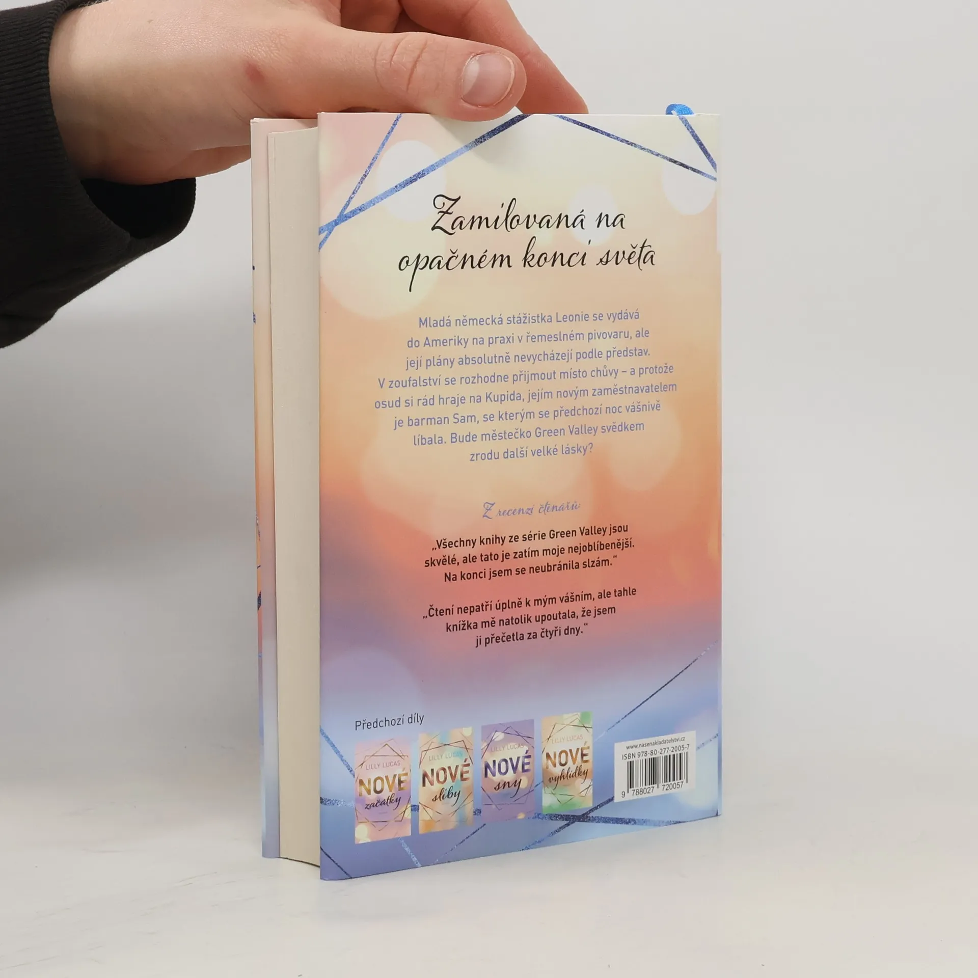 Zamilovaná na druhém konci světa. Když Leonie uvízne v malém městečku Green Valley ve Skalistých horách, má za sebou perný den. Zahraniční praxe v pivovaru řemeslného piva vybouchla. Naprosto zoufalá si vylije srdce před šarmantním barmanem Samem, protože bez práce jí nezbývá nic jiného, než se vrátit domů do Německa. Mezi oběma dojde ke žhavému polibku, ale potom se Sam najednou stáhne. Další den se chce Leonie ucházet o práci chůvy a naprosto nečekaně stojí proti Samovi: Ten je otcem malé Mayi... Bušení srdce, velké sny a pocit, že jste doma: To je zamilovaná série Green Valley od Lilly Lucas.