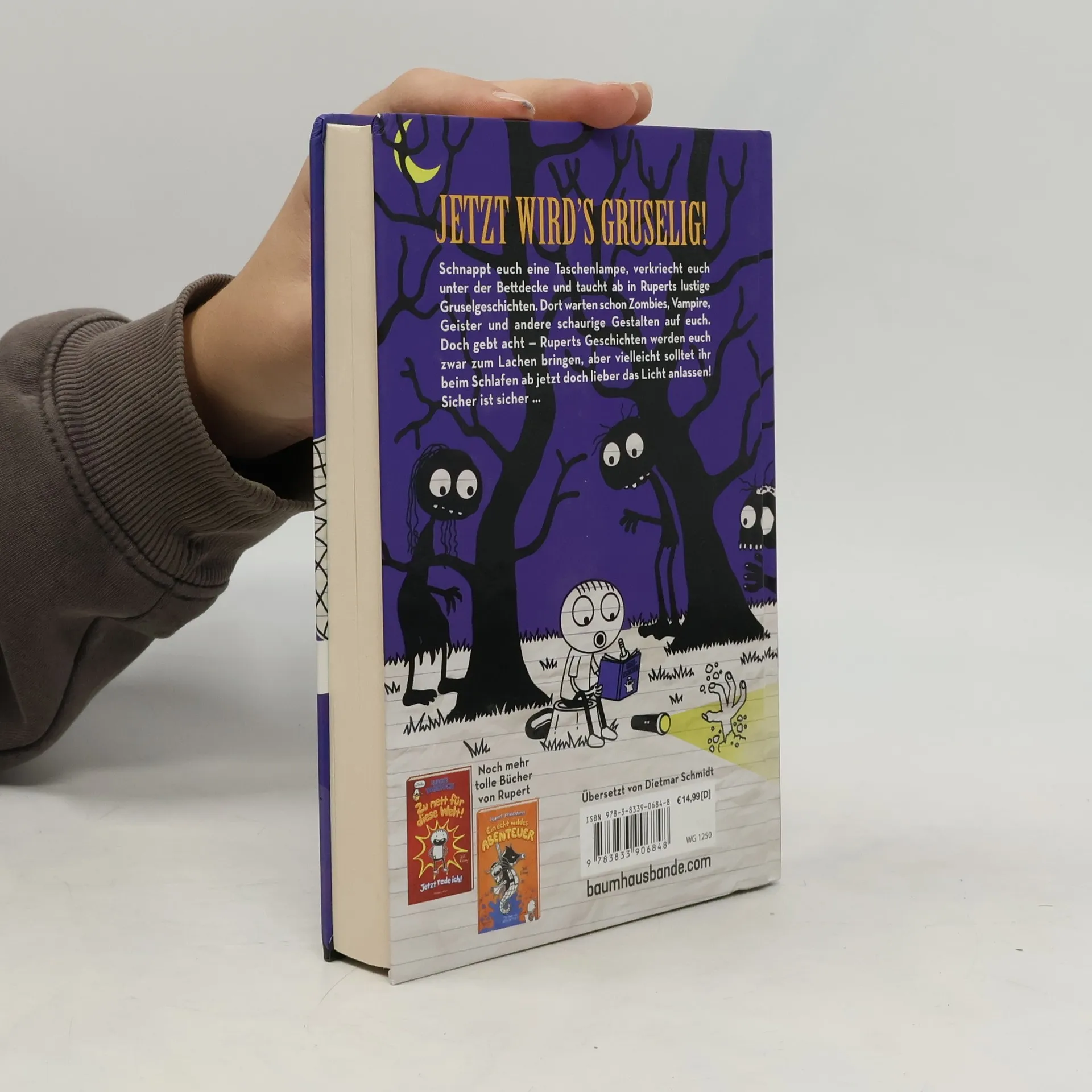 Schnappt euch eine Taschenlampe, verkriecht euch unter der Bettdecke und taucht ab in Rupert Jeffersons verrückte und lustige Fantasiewelten. Zombies, Vampire, Geister und andere gruselige Gestalten werden euch garantiert wohlige Schauer über den Rücken jagen. Doch gebt acht - Ruperts Geschichten mögen euch zum Lachen bringen, aber wer weiß, am Ende lasst ihr beim Schlafen vielleicht doch lieber das Licht an! Sicher ist sicher ...