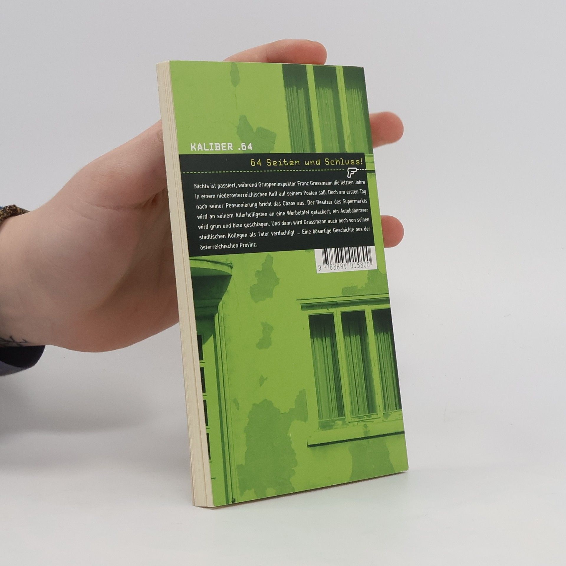 Nichts ist passiert, während Gruppeninspektor Franz Grassmann die letzten Jahre in einem niederösterreichischen Kaff auf seinem Posten saß. Doch am ersten Tag nach seiner Pensionierung bricht das Chaos aus. Der Besitzer des Supermarkts wird an seinem Allerheiligsten an eine Werbetafel getaggert, ein Autobahnraser wird grün und blau geschlagen. Und dann wird Grassmann auch noch von seinen städtischen Kollegen als Täter verdächtigt … Eine bösartige Geschichte aus der österreichischen Provinz.