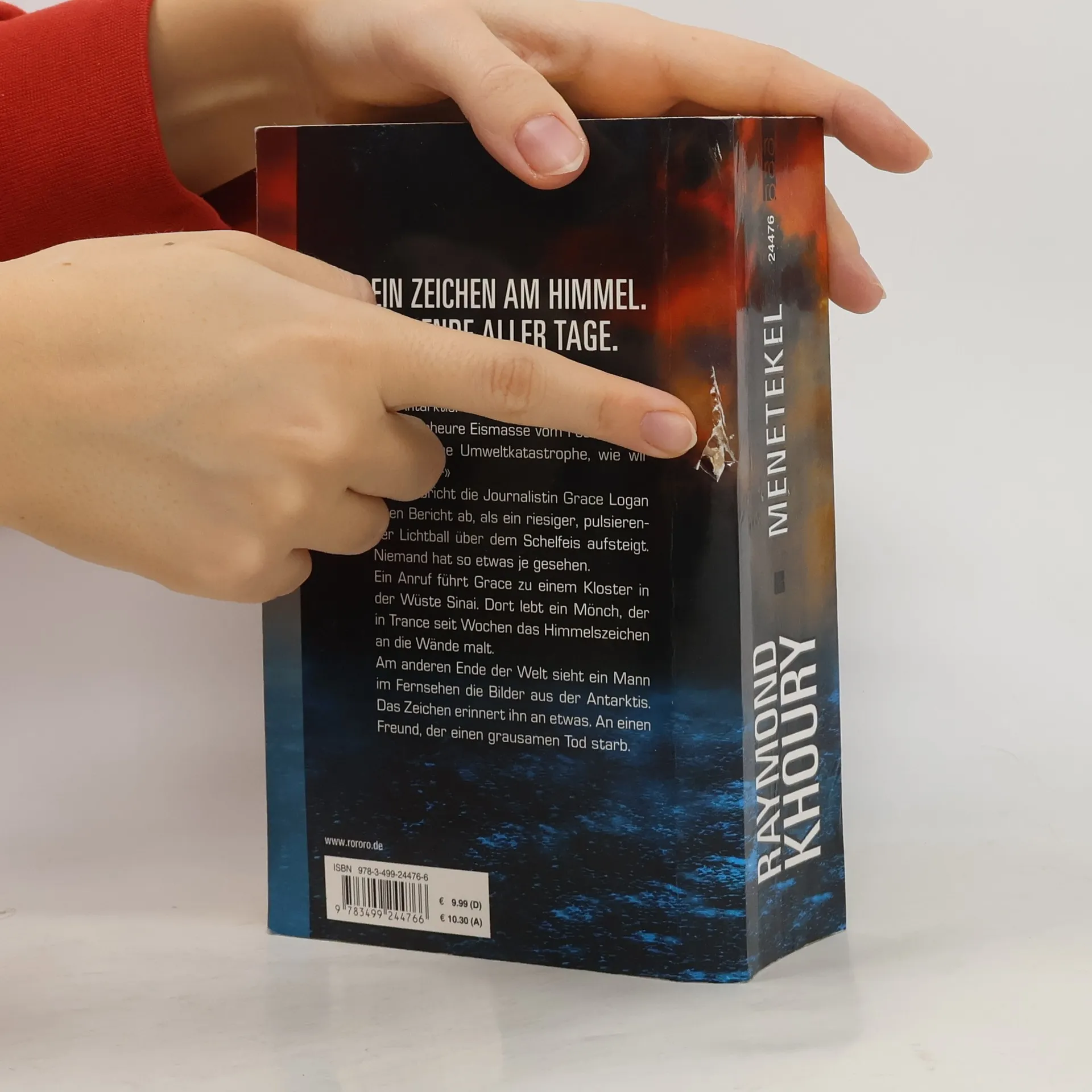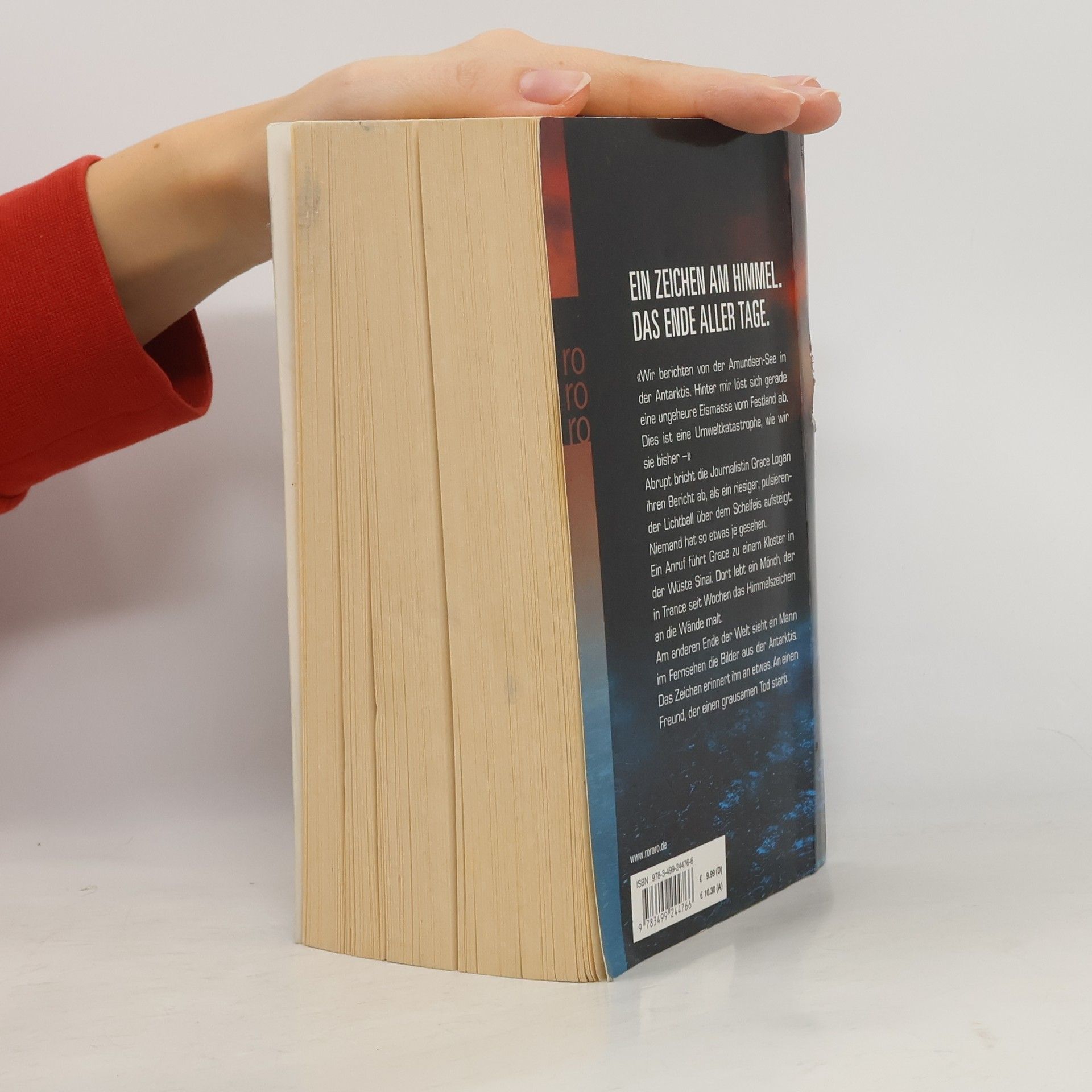 Ein Zeichen am Himmel. Das Ende aller Tage. «Wir berichten von der Amundsen-See in der Antarktis. Hinter mir löst sich gerade eine ungeheure Eismasse vom Festland ab. Dies ist eine Umweltkatastrophe, wie wir sie bisher –» Abrupt bricht die Journalistin Grace Logan ihren Bericht ab, als ein riesiger, pulsierender Lichtball über dem Schelfeis aufsteigt. Niemand hat so etwas je gesehen. Ein Anruf führt Grace zu einem Kloster in der Wüste Sinai. Dort lebt ein Mönch, der in Trance seit Wochen das Himmelszeichen an die Wände malt. Am anderen Ende der Welt sieht ein Mann im Fernsehen die Bilder aus der Antarktis. Das Zeichen erinnert ihn an etwas. An einen Freund, der einen grausamen Tod starb.