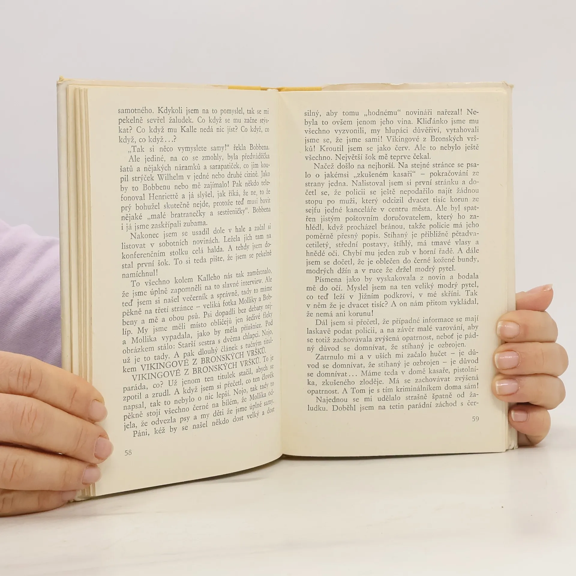 Dobrodružný dětský román, těžící z prostředí sedmičlenné rodiny norského polárního badatele, rozvíjí příběh třináctiletého přemýšlivého syna, který v souboji s ozbrojeným lupičem, držícím v zajetí jeho čtyřletého bratra, překonává strach, tělesnou nezpůsobilost a vyrovnává se s falešnými představami o odvaze. Kniha, jež epizodním způsobem zachycuje i proměnu jeho mladší sestry, je dílem mezinárodně uznávané autorky, předsedkyně Svazu norských spisovatelů a byla poctěna jednou z jejích četných literárních cen.