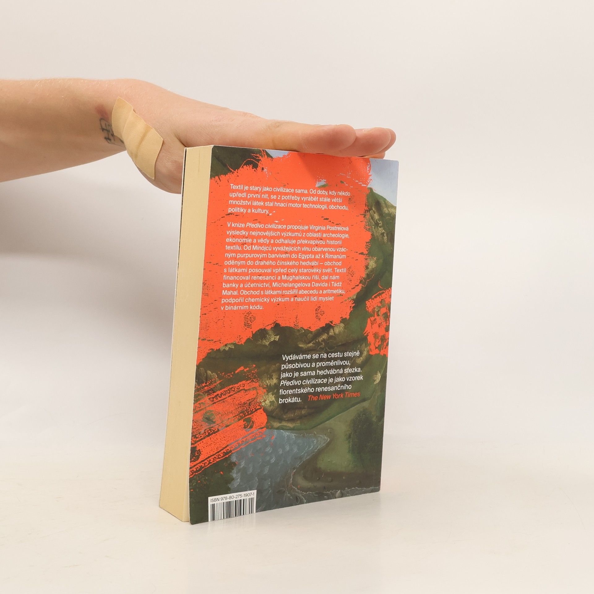 Obratně utkaný příběh zboží, které ovlivnilo chod světa. Textil je starý jako civilizace sama. Od doby, kdy někdo upředl první nit, se z potřeby vyrábět stále větší množství textilu stal hnací motor technologií, obchodu, politiky a kultury. V knize Předivo civilizace propojuje Virginia Postrelová výsledky nejnovějších výzkumů z oblasti archeologie, ekonomie a vědy a odhaluje překvapivou historii textilu. Od Mínójců vyvážejících vlnu obarvenou vzácným purpurovým barvivem do Egypta až k Římanům oděným do drahého čínského hedvábí obchod s látkami posouval vpřed celý starověký svět. Textil financoval renesanci a Mughalskou říši, dal nám banky a účetnictví, Michelangelova Davida i Tádž Mahal. Obchod s látkami rozšířil abecedu a aritmetiku, podpořil chemický výzkum a naučil lidi myslet v binárním kódu.