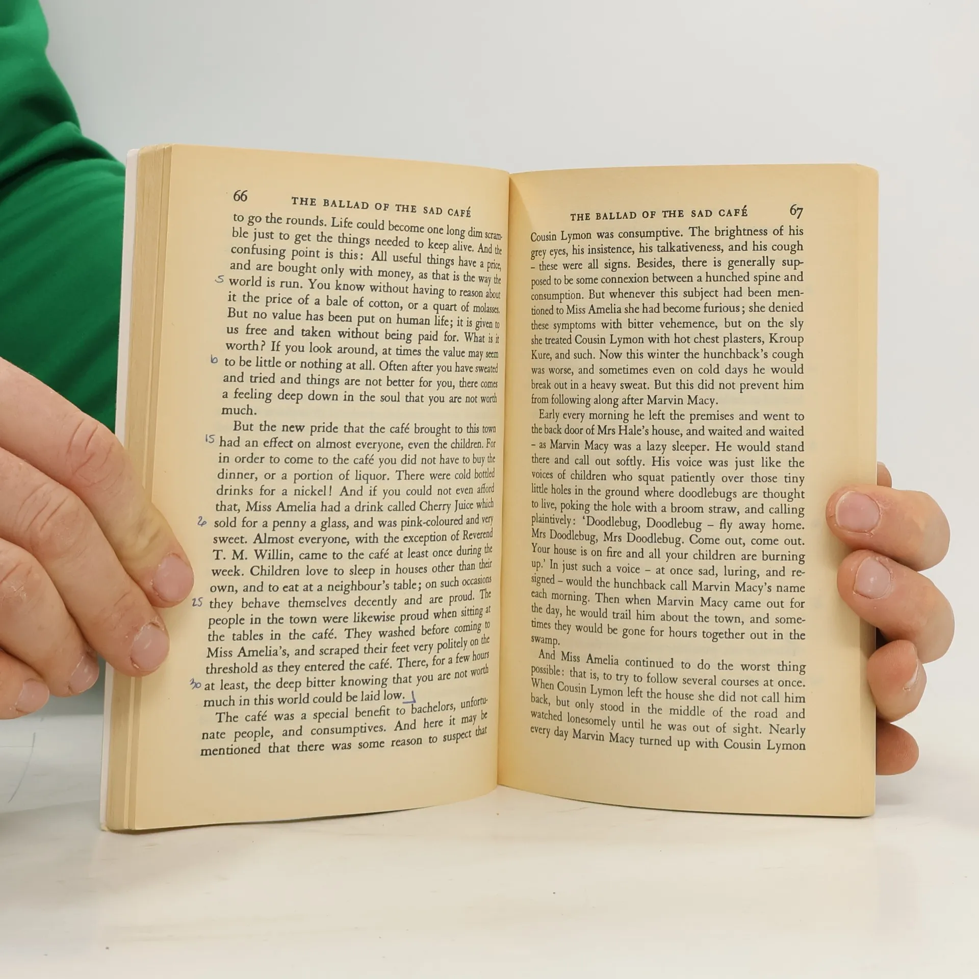 The title story of this collection follows a simple triangle of unrequited love. Miss Amelia, gaunt and lonely owner of a small town store, squanders her love on cousin Lymon, the little strutting hunchback who turned the store into a cafe.