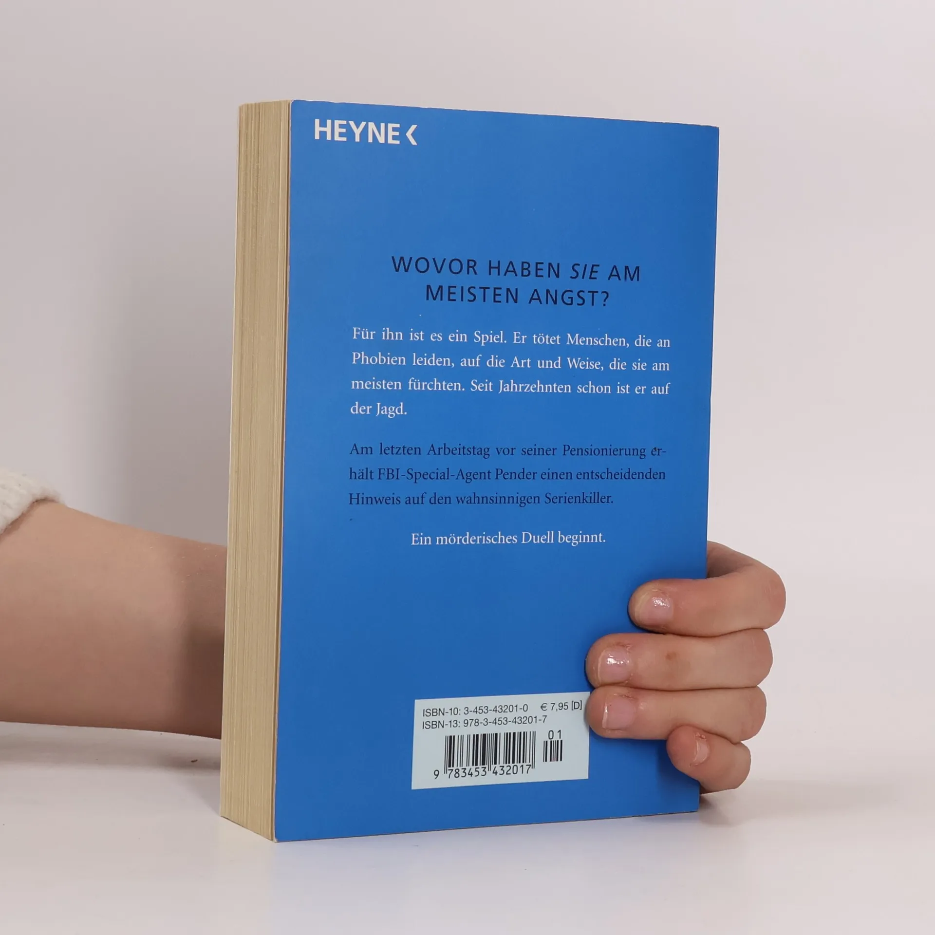 Wovor haben Sie am meisten Angst? Für ihn ist es ein Spiel. Er tötet Menschen, die an Phobien leiden, auf die Art und Weise, die sie am meisten fürchten. Seit Jahrzehnten schon ist er auf der Jagd. Am letzten Arbeitstag vor seiner Pensionierung erhält FBI-Agent Pender einen entscheidenden Hinweis auf den wahnsinnigen Serienkiller. Ein mörderisches Duell beginnt.