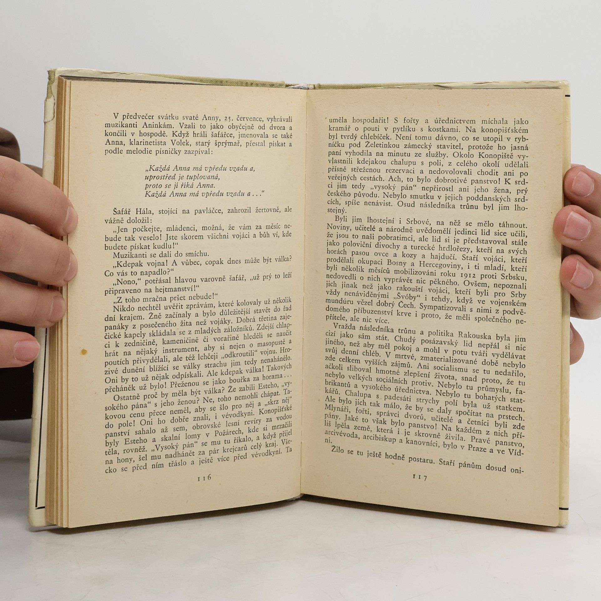 První autorův román (poprvé vydáno v r. 1931) je umístěn do rodného Posázaví a vypráví o osudech několika venkovských lidí, prožívaných v průběhu první světové války. Teprve s koncem války a s mírem se dostaví mezi lidmi očistné usmíření.