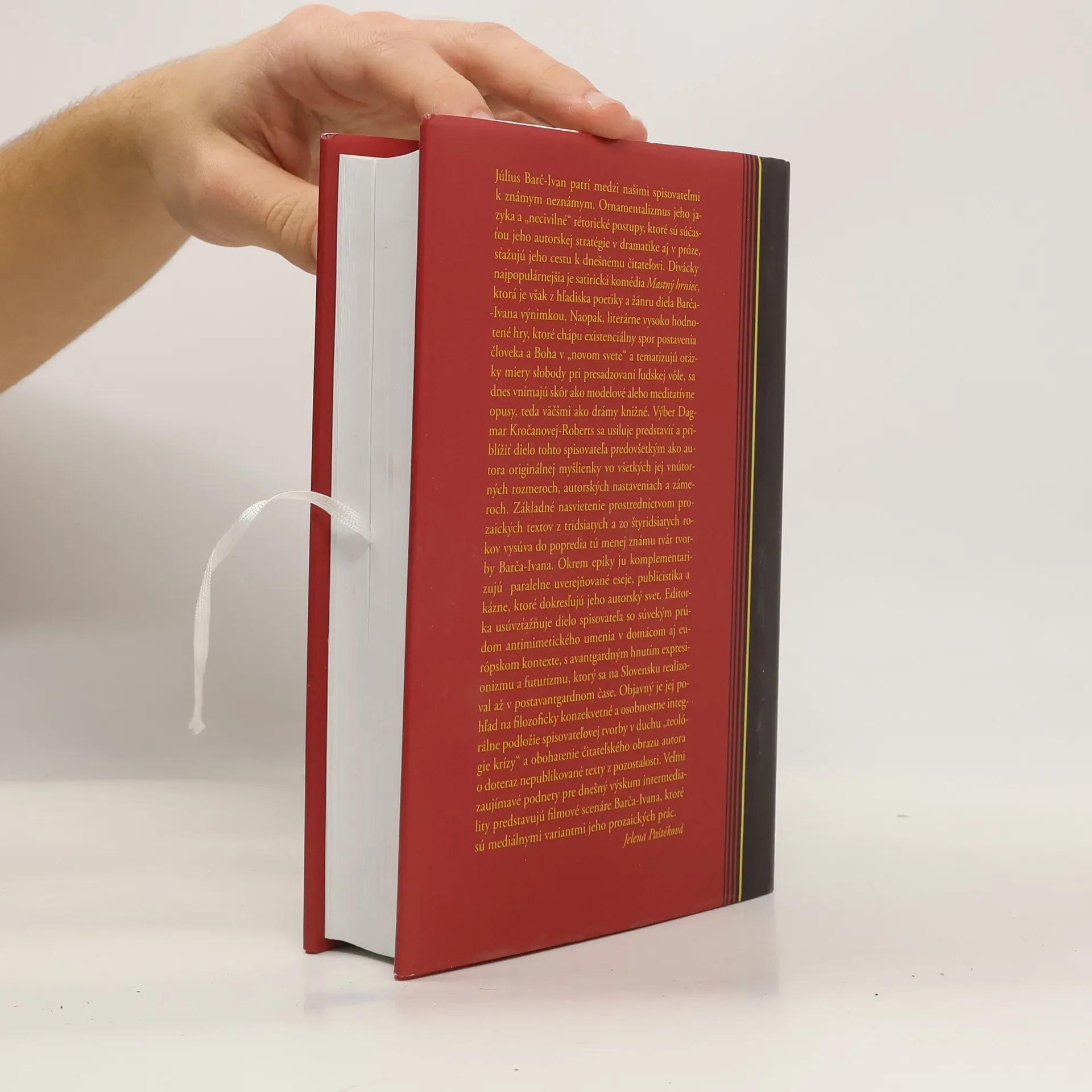 Július Barč-Ivan je známy predovšetkým ako dramatik. Zväzok Prózy predstavuje ďalšiu oblasť jeho spisovateľskej činnosti – prozaické dielo z tridsiatych a zo štyridsiatych rokov 20. storočia. Výber obsahuje novely zo súborov Pohádka, Predposledný život a Úsmev bolesti, román Železné ruky, ako aj doteraz neuverejnené filmové scenáre a rozprávky z pozostalosti. Do zväzku sú zaradené aj Barčove-Ivanove publicistické a esejistické práce. Výber poskytuje obraz o podobách a vývoji Barčovej-Ivanovej prózy a umožňuje porovnať ju s tvorbou iných autorov tohto obdobia. Zámerom zväzku je predstaviť tvorbu Júliusa Barča-Ivana ako druhovo a žánrovo rôznorodú a zároveň poukázať na jej ideovú, tematickú, kompozičnú i výrazovú vyhranenosť.