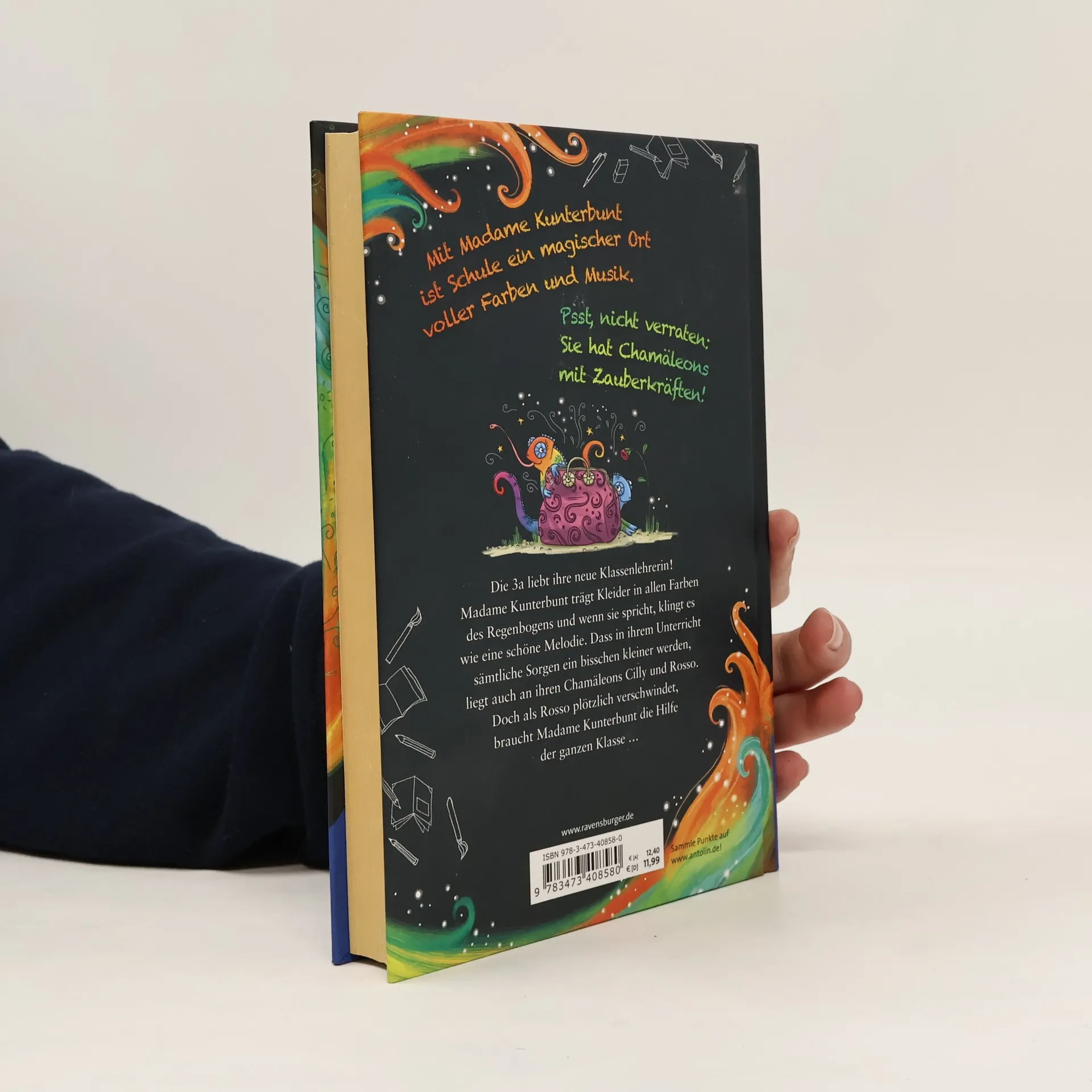 Wenn Schule schöner ist als Ferien! Die Schüler der 3a lieben ihre neue Klassenlehrerin! Madame Kunterbunt trägt Kleider in allen Farben des Regenbogens, wenn sie spricht, klingt es wie eine schöne Melodie, und sämtliche Sorgen werden in ihrer Gegenwart ein bisschen kleiner. Das liegt auch an ihren Chamäleons Cilly und Rosso, die immer herrlich viel Blödsinn anstellen und auch ansonsten echt fantastisch sind. Denn ihre schimmernden Schuppen haben Zauberkräfte! Entdecke alle Abenteuer rund um Madame Kunterbunt: Band 1: Madame Kunterbunt und das Geheimnis der Mutmagie Band 2: Madame Kunterbunt und das Abenteuer der Wunderwünsche Band 3: Madame Kunterbunt und das Rätsel des Mitmachzaubers