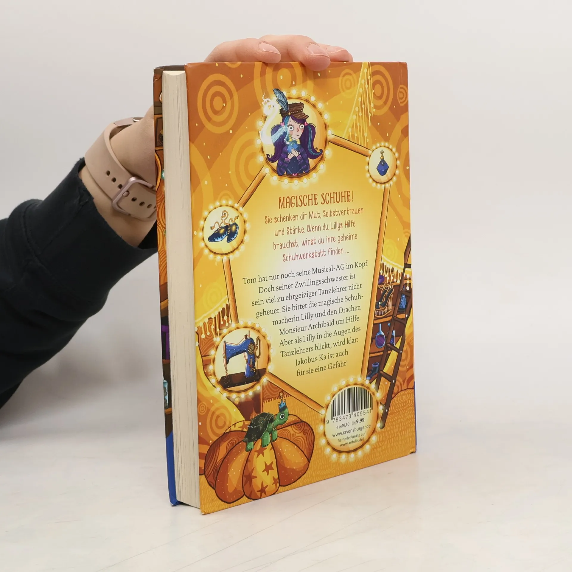 Diese magischen Schuhe schenken dir Mut, Selbstvertrauen und Stärke. Wenn du Lillys Hilfe brauchst, wirst du ihre geheime Schuhwerkstatt finden … Tom hat nur noch seine Musical-AG im Kopf. Seine Zwillingsschwester weiß, dass das Tanzen sein großer Traum ist, aber sie macht sich immer mehr Sorgen um ihn. Sein neuer Tanzlehrer Jakobus Ka ist ihr nicht geheuer. Vielleicht kann die magische Schuhmacherin Lilly Tom aus seinem Bann befreien? Doch als Lilly in die Augen des Tanzlehrers blickt, wird klar: Jakobus Ka ist auch für sie eine große Gefahr! Entdecke alle Abenteuer in der magischen Schuhwerkstatt: Band 1: Die geheime Werkstatt Band 2: Die verbotenen Stiefel Band 3: Die zauberhaften Flügel Band 4: Der tanzende Drache Band 5: Der funkelnde Berg Band 6: Die verschwundene Schildkröte Band 7: Das kostbare Pferd Band 8: Die glitzernde Insel Adventskalender: Das Meer der Wünsche