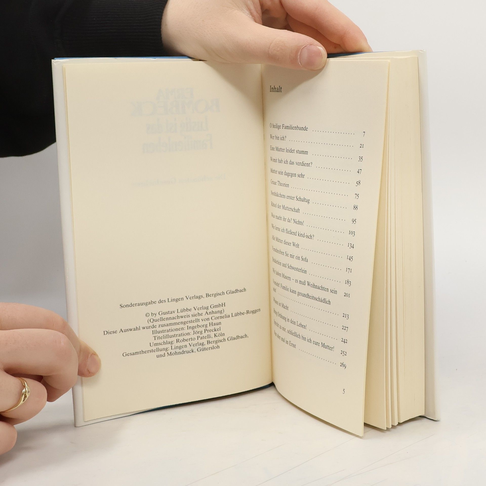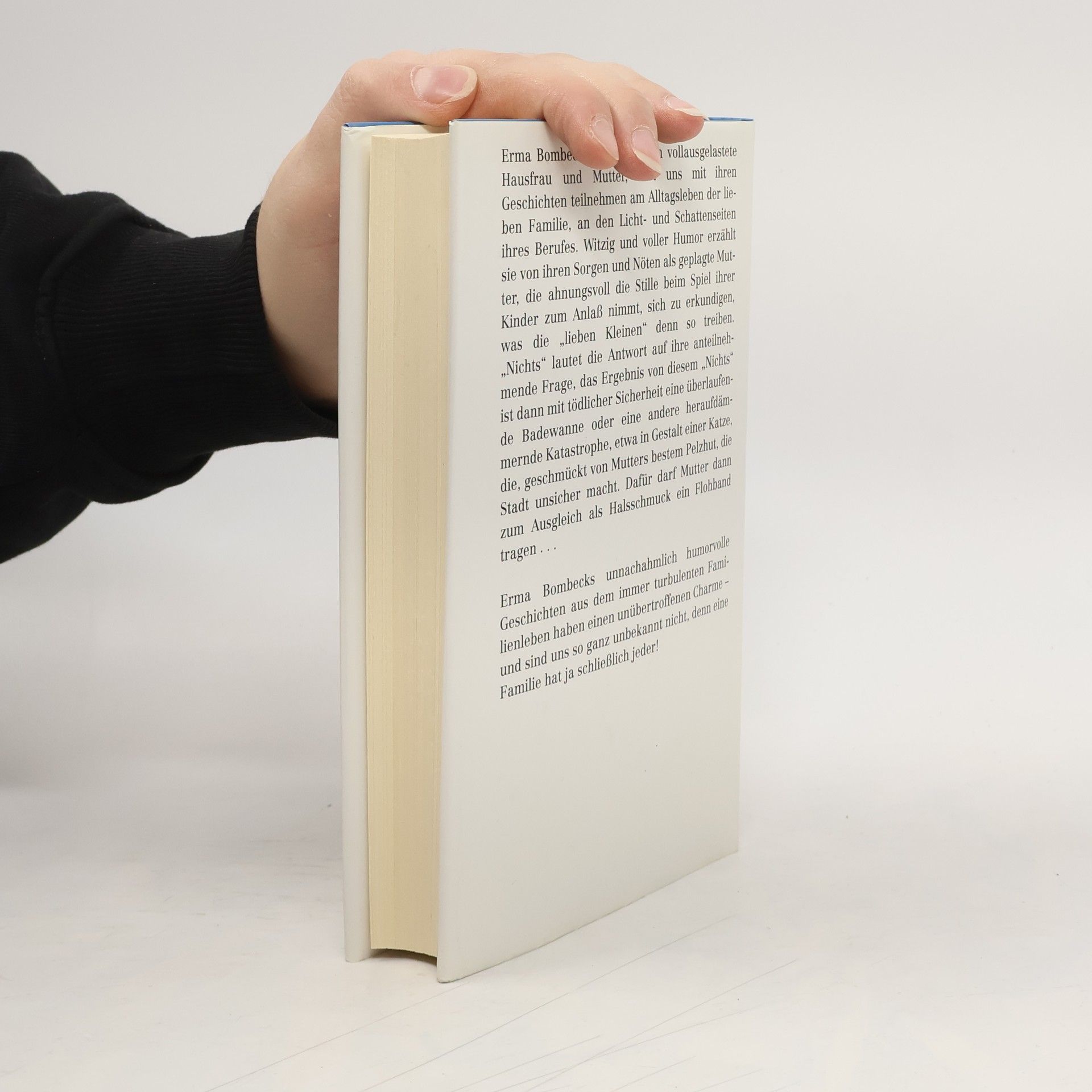 Jahrelang mußte sich Erma Bombeck mit ihren süßen, jedoch ständig zankenden Kindern und ihrem lieben, aber maßlos unordentlichen Ehemann herumärgern, bis sie auf die Idee kam, sich diesen Frust von der Seele zu schreiben. Wer allerdings glaubt, daß sie nun, da die Kinder aus dem Haus sind, mit ihrer Weisheit am Ende ist, der irrt gewaltig. Mit ihrem Witz und Charme vermag sie auch andere Lebenslagen wie zum Beispiel den Urlaub zu meistern. Ihre höchst vergnüglichen geschichten enthalten neben viel Humor auch ein Stück Lebensweisheit.