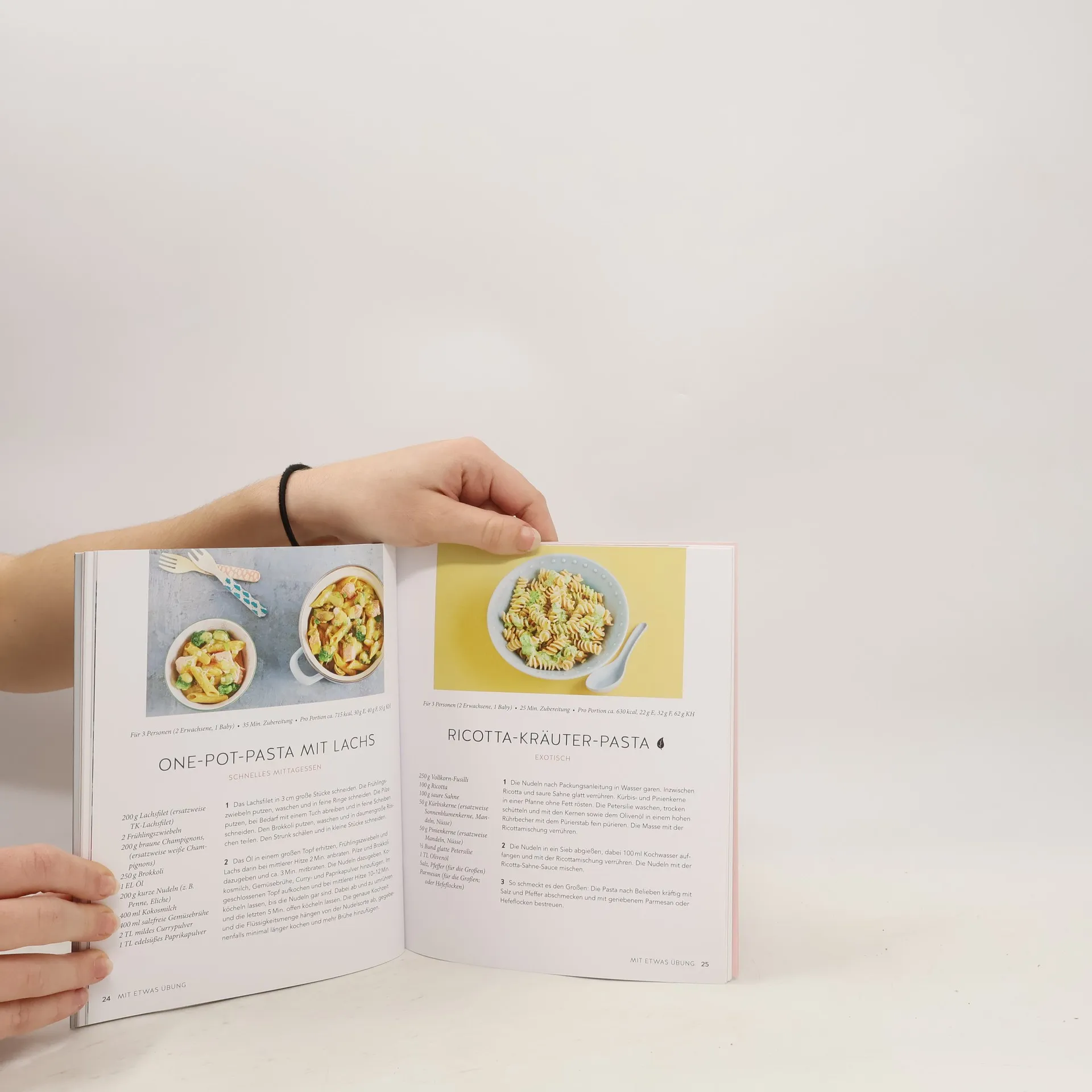 Dieses Kochbuch bietet eine Vielzahl an Rezepten für Babys und die gesamte Familie, ideal für den Einstieg in die Beikostzeit, sei es mit breifreiem Ansatz oder als Übergang von klassischem Brei zu fester Kost. Die Autorinnen des breifreibaby-Blogs zeigen, wie einfach gesunde Familienküche sein kann. Der Beikoststart erfolgt meist um den 6. Monat, sodass Babys am Familientisch mitessen können. Die Rezepte sind zeitsparend und fördern gesunde Essgewohnheiten für die ganze Familie. Es gibt Frühstücksrezepte, Basics, BLW-Hauptgerichte und zuckerfreie Optionen. Im Gegensatz zum klassischen Babybrei müssen bei baby-led weaning die Mahlzeiten nicht separat für das Baby zubereitet werden. Die Gerichte sind so gestaltet, dass sie von Babys, Geschwistern und Eltern gemeinsam genossen werden können. Das Buch ist in drei Kapitel unterteilt: 1. Einfache und schnelle Rezepte für die ersten Wochen der Beikost. 2. Komplexere Gerichte, die mit dem Pinzettengriff gegessen werden können. 3. Bewährte Kinderlieblinge wie Pflanzenmilch, Gemüsebrühe und salzfreies Brot. Zusätzlich werden Grundlagen zu BLW, Tipps zu Beikostreifezeichen und ungeeigneten Lebensmitteln sowie Empfehlungen für Alltagshelfer bereitgestellt. Die Autorinnen zeigen auch, wie Meal Prep die Kochzeit minimieren kann, um mehr Zeit mit dem Baby zu verbringen. Das Buch eignet sich hervorragend als Geschenk für Mütter und Freunde, die an breifrei interessiert sind.