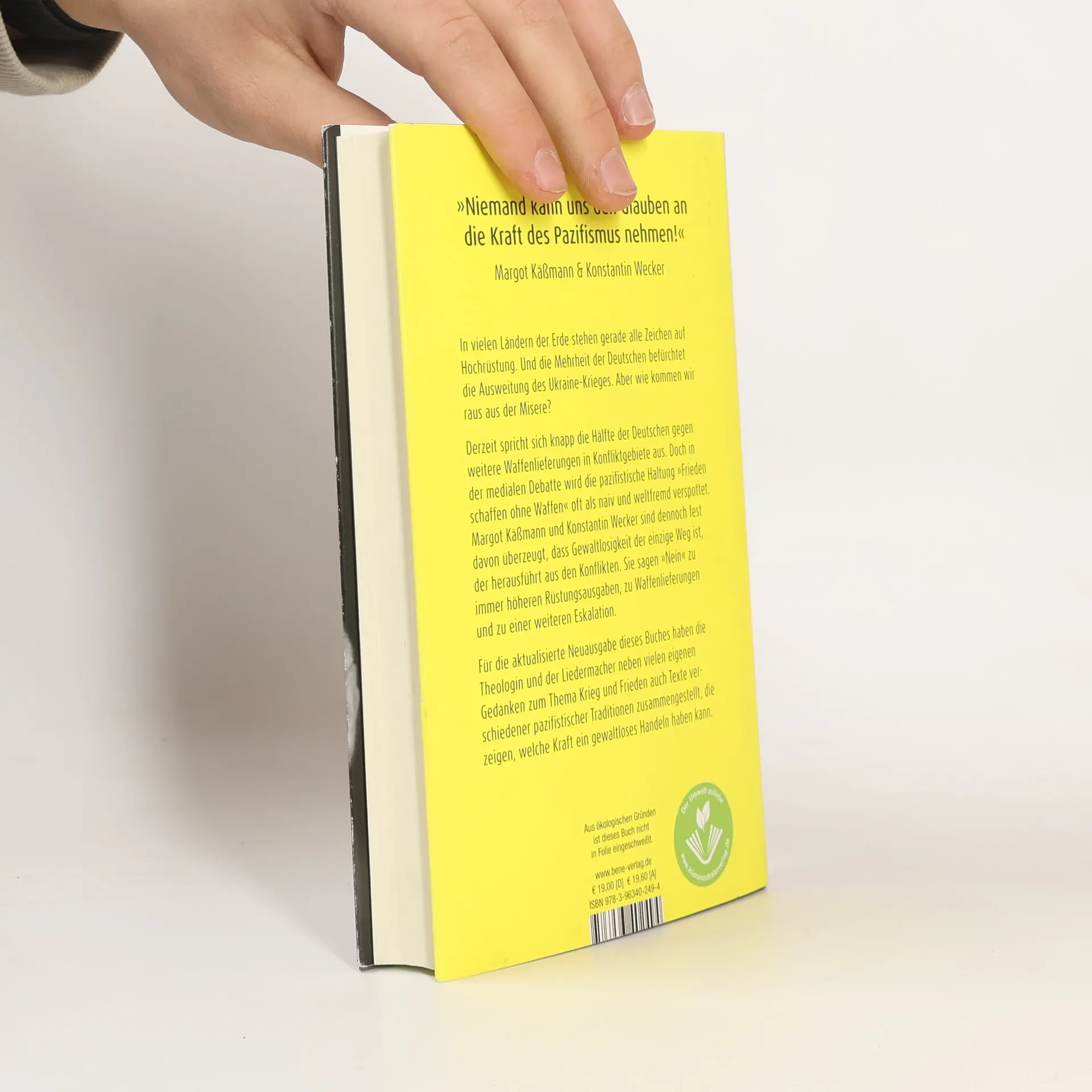 Margot Käßmann und Konstantin Wecker sind überzeugt, dass es eine gefährliche Illusion ist, Waffengewalt mit Waffen zu stoppen. Sie lehnen Hochrüstung und Waffenlieferungen entschieden ab und betonen: »Niemand kann uns den Glauben an die Kraft des Pazifismus nehmen!« Seit dem 24. Februar 2022, als russische Truppen in die Ukraine einmarschierten, dauert der Angriffskrieg mit zunehmender Härte an. Viele Staaten, darunter Deutschland, liefern Waffen zur Verteidigung, während die Mehrheit der Deutschen eine Ausweitung des Krieges fürchtet. Doch wie können wir aus dieser Misere herauskommen? Aktuell spricht sich fast die Hälfte der Deutschen gegen weitere Waffenlieferungen aus, doch die pazifistische Haltung »Frieden schaffen ohne Waffen« wird oft als naiv verspottet. Käßmann und Wecker sind jedoch überzeugt, dass Gewaltlosigkeit der einzige Ausweg aus den Konflikten ist. Sie sagen »Nein« zu höheren Rüstungsausgaben und einer weiteren Eskalation. Frieden ist für sie machbar und soll nicht in Vergessenheit geraten. In der aktualisierten Neuausgabe des Buches bringen die beiden neben eigenen Gedanken auch Texte aus verschiedenen pazifistischen Traditionen zusammen, die die Kraft gewaltlosen Handelns verdeutlichen. Käßmann und Wecker fordern ein Umdenken: »Es ist Zeit für ein ‚Nein‘ zu einer immer stärkeren Eskalation. Ich bin überzeugt von der Kraft der Gewaltlosigkeit!«