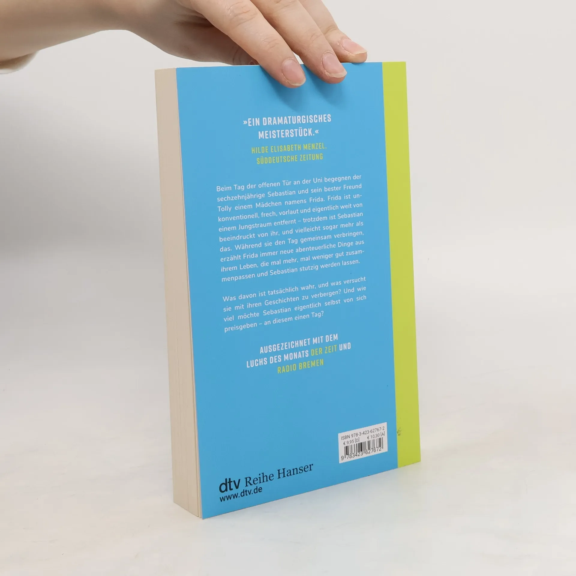 Wie nah kann man sich an nur einem einzigen Tag kommen? Beim Tag der offenen Tür an der Uni begegnet Sebastian dem allerschönsten Mädchen, das er sich vorstellen kann. Natürlich fehlen ihm die Worte, und er kommt sich vor wie der letzte Depp. Doch dann grätscht ein anderes Mädchen dazwischen: Frida ist unkonventionell, frech, vorlaut und eigentlich weit von einem Jungstraum entfernt. Während sie den Tag gemeinsam verbringen, erzählt Frida immer neue abenteuerliche Dinge aus ihrem Leben, die mal mehr, mal weniger gut zusammenpassen und Sebastian stutzig werden lassen. Was ist tatsächlich wahr, und was versucht sie mit ihren Geschichten zu verbergen? Und wie viel möchte Sebastian selbst von sich preisgeben – an diesem einen Tag? Eine große Freundschaftsgeschichte mit rasanten Dialogen.