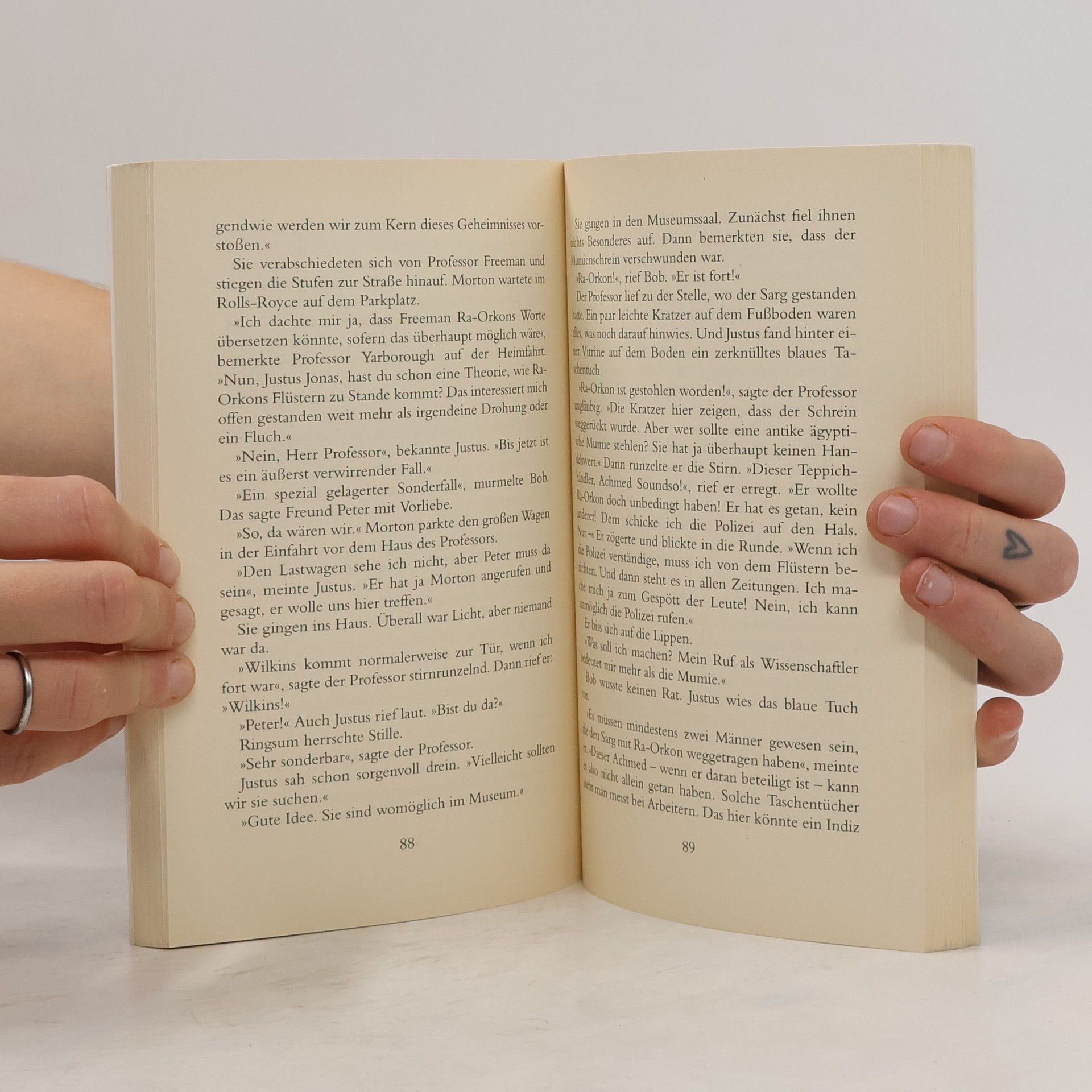 Professor Yarborough traut seinen Ohren nicht: Die 3000 Jahre alte Mumie aus Kairo, die er untersuchen will, fängt plötzlich an zu flüstern – und noch dazu in einem alt-ägyptischen Dialekt, den niemand verstehen kann. Sein Butler Wilkins befürchtet, dass der Professor durch die Störung der Totenruhe einen Fluch heraufbeschworen hat. Sofort eilen die drei ??? dem Professor zu Hilfe. Die Freunde sind wild entschlossen, das Geheimnis zu lüften, auch wenn der Fluch der Mumie sie treffen sollte.