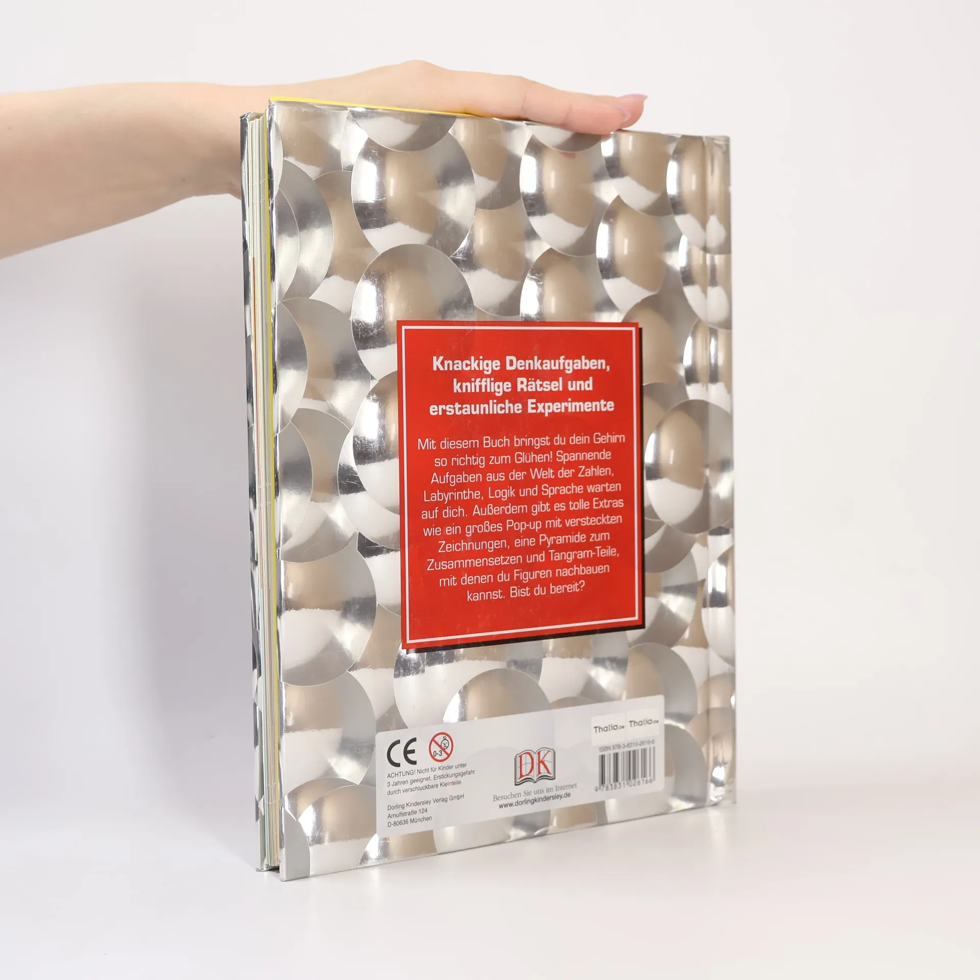Knackige Denkaufgaben, knifflige Rätsel und erstaunliche Experimente - »Querdenker« bringt das Gehirn so richtig zum Glühen! Spannende Aufgaben aus der Welt der Zahlen, Labyrinthe, Logik und Sprache warten darauf, geknackt zu werden. Dabei sind die Aufgaben genauso bunt gemischt wie die »Zutaten«, die man zu ihrer Lösung braucht: Mal reicht Konzentration, mal sind auch Papier, Münzen, Stifte, Schnüre oder sogar Gabeln nötig. Das regt die Kreativität an und fördert das logische und räumliche Denken. Mit einigen Experimenten kann auch der eigene Körper ausgetrickst werden! Aber es ist nicht nur spannend, die verschiedenen Aufgaben zu lösen und die Tricks auszuprobieren – die dahinterliegenden Phänomene werden auch genau erklärt, z. B. wie Zahnräder funktionieren oder was ein Schwerpunkt ist. So rätseln und staunen Kids nicht nur, sondern lernen auch noch etwas nebenbei. Eine Tasche am Ende des Buchs bewahrt Formen und Figuren zum Zusammenlegen auf. Und eine ganz besondere Überraschung befindet sich in der Mitte dieses spannenden Rätselbuchs: ein buntes 3D-Pop-up, in dem Bilder versteckt sind. Ein absoluter Hingucker!