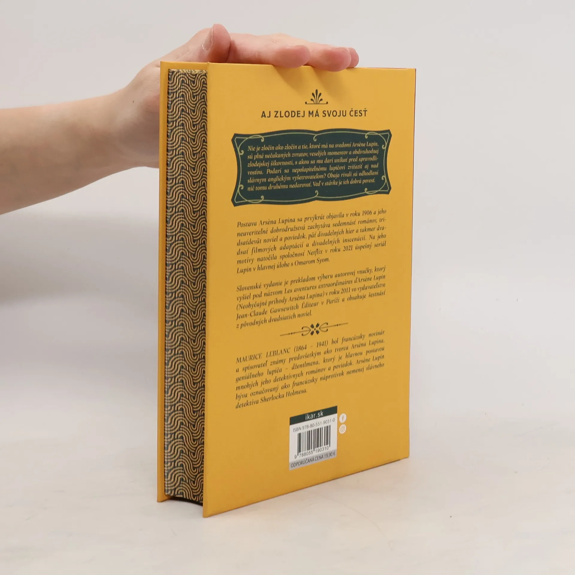 Nie je zločin ako zločin a tie, ktoré má na svedomí Arsene Lupin, sú plné nečakaných zvratov, veselých momentov a obdivuhodnej zlodejskej šikovnosti, s akou sa mu darí unikať pred spravodlivosťou. Podarí sa nepolapiteľnému lupičovi zvíťaziť aj nad slávnym anglickým vyšetrovateľom? Obaja súperi sú odhodlaní nič tomu druhému nedarovať. Veď v stávke je ich dobrá povesť. Postava Arsena Lupina sa prvýkrát objavila v roku 1906 a jeho neuveriteľné dobrodružstvá zachytáva sedemnásť románov, tridsaťdeväť noviel a poviedok, päť divadelných hier a takmer dvadsiatka filmových adaptácií a divadelných inscenácií. Slovenské vydanie je prekladom výberu autorovej vnučky, ktorý vyšiel pod názvom LES AVENTURES EXTRAORDINAIRES D'ARSENE LUPIN (Neobyčajné príhody Arsena Lupina) v roku 2011 vo vydavateľstve Jean-Claude Gawsewitch Éditeur v Paríži a obsahuje šestnásť z pôvodných dvadsiatich noviel.