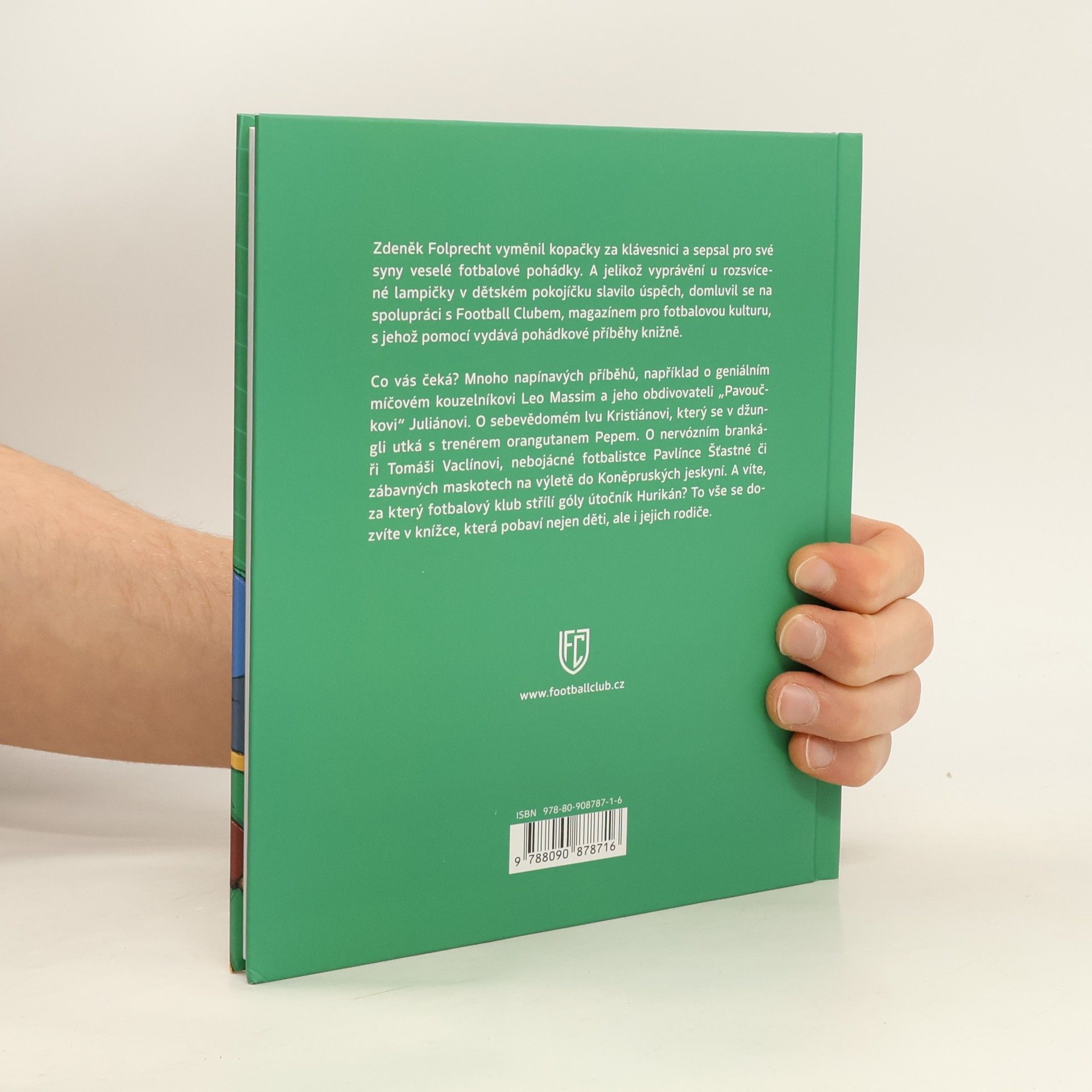 Zdeněk Folprecht vyměnil ligové kopačky za klávesnici a sepsal pro své syny veselé fotbalové pohádky. A jelikož vyprávění u rozsvícené lampičky v dětském pokojíčku slavilo úspěch, domluvil se na spolupráci s Football Clubem, magazínem pro fotbalovou kulturu, s jehož pomocí vydává pohádky knižně. Co váš čeká? Mnoho napínavých příběhů, například o geniálním míčovém kouzelníkovi Leo Massim a jeho obdivovateli „pavoučkovi“ Juliánovi. O sebevědomém lvu Kristiánovi, který se utká s trenérem orangutanem Pepem. O nervózním brankáři Tomáši Vaclínovi, nebojácné fotbalistce Pavlínce Šťastné či zábavných maskotech na výletě. A víte, kterým fotbalovým klubům fandí Červená Karkulka a Včelka Mája? To vše se dozvíte v knížce, která pobaví nejen děti, ale i jejich rodiče.