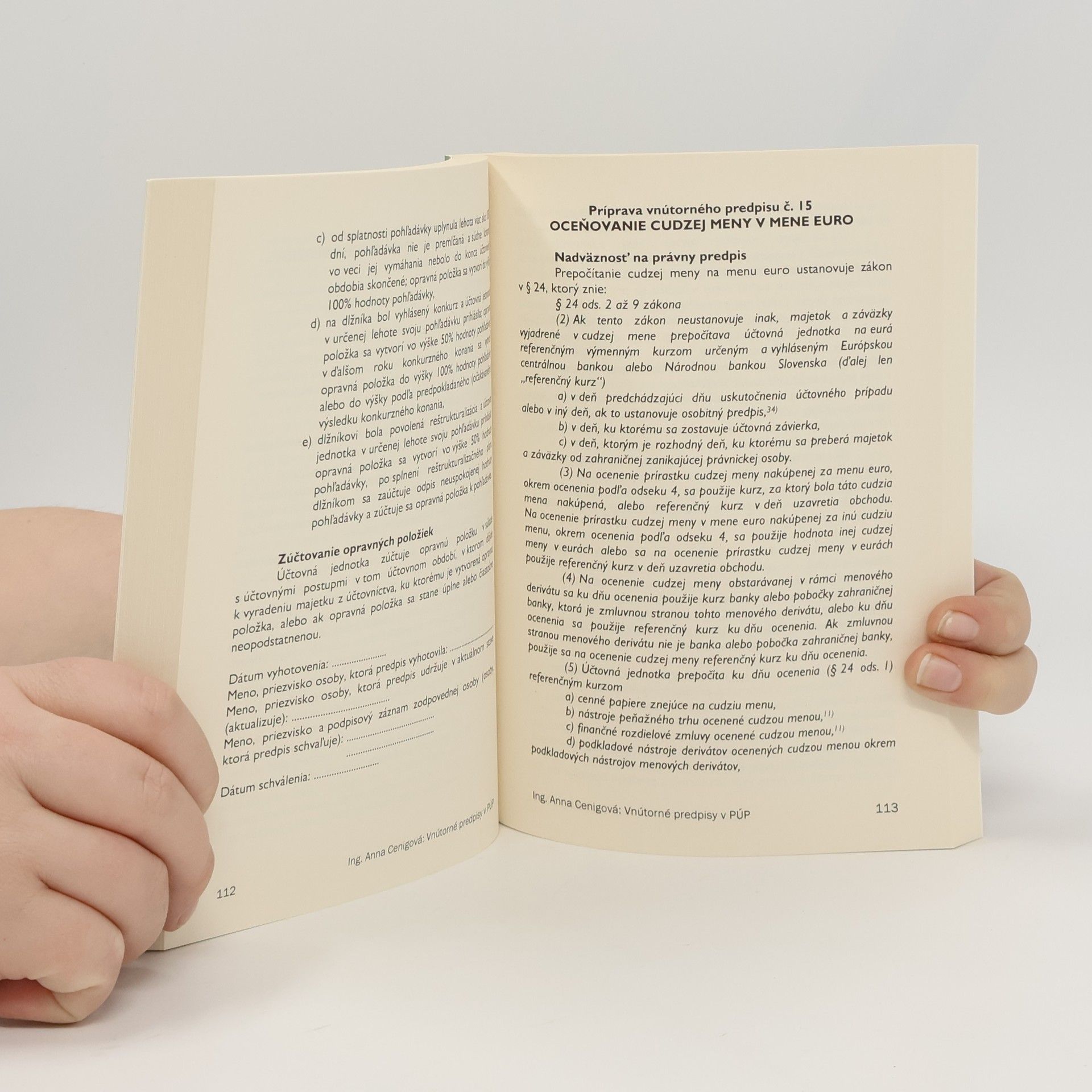Vnútorné predpisy v podvojnom účtovnictve podnikateľov, Anna Cenigová