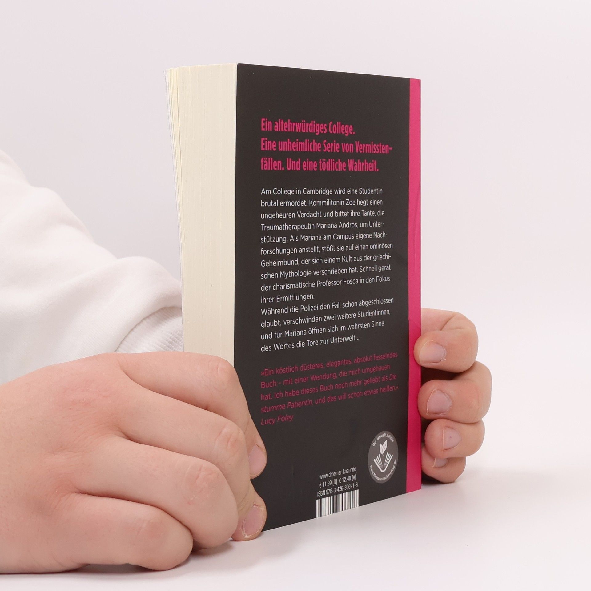 Ein altehrwürdiges College, eine unheimliche Serie von Vermissten-Fällen und eine tödliche Wahrheit bilden den Hintergrund dieses packenden Psycho-Thrillers. An Marianas ehemaligem College in Cambridge wird eine Studentin brutal ermordet aufgefunden, was Angst auf dem Campus auslöst. Die Trauma-Therapeutin reist an, um ihrer dort eingeschriebenen Nichte beizustehen. Kaum angekommen, verschwinden zwei weitere Studentinnen, und Mariana beginnt, Nachforschungen anzustellen. Diese führen sie in eine düstere Parallelwelt des Colleges, wo ein exzentrischer Professor, der anscheinend einen geheimen Kult wiederbelebt, im Verdacht steht. Doch ist die Wahrheit komplizierter und persönlicher? Während die Polizei den Fall für abgeschlossen hält, öffnen sich für Mariana die Tore zur Unterwelt. Clever und atemraubend erzählt, zieht der Bestseller-Autor erneut alle Register intelligenter Psycho-Spannung. Kritiker loben das Buch als „köstlich düster, elegant und absolut fesselnd“ mit einer Wendung, die überrascht. Es wird als noch besser als das Vorgängerwerk beschrieben, was die Erwartungen an den Thriller weiter steigert.