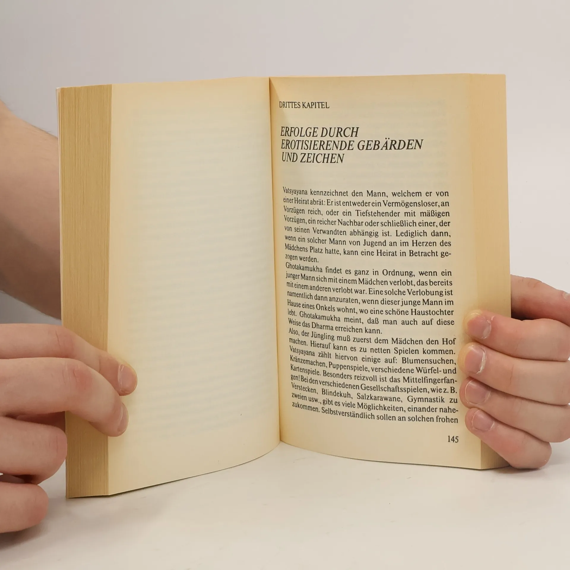 Über die Liebe werden und wurden unzählige Bücher geschrieben. Die meisten verschwinden schon nach kurzer Zeit wieder vom Buchmarkt. Eines aber hat Jahrtausende überdauert: 'Kamasutra' das indische Lehrbuch der Liebe, geschrieben vom großen Menschenkenner und indischen Weisen Vatsyayana. Der Gründe, warum dieses Buch immer wieder gelesen wird, gibt es viele. Obwohl Maß und Geheimnisse der Liebesumarmungen in allen Varianten geschildert werden, bleibt dieses Buch dennoch im zauberhaften Duft seiner Atmosphäre eingehüllt. Ob es sich um die Begegnung mit der eigenen Frau, mit einem Mädchen oder mit einer Käuflichen handelt, immer bleibt das Gebot menschlicher Distanz bestehen, jenseits derer die Liebe schwände und zum bloßen Sexualakt reduziert würde. Man sollte zwar nicht alle 'Lehren' übernehmen, da sie schließlich aus einem ganz anderen, östlichen Kulturkreis stammen. Aber Kuß, Umarmung und Vereinigung zwischen Liebenden bleiben zu allen Zeiten und in allen Ländern gleich. Aus diesem Grunde spricht uns dieses Buch aus einer Zeit vor etwa 2000 Jahren immer noch an, da in ihm die überzeitliche Kunst der Werbung des Mannes bis hin zu den Geheimlehren über erotisierende Getränke, Zaubereien und luststeigernde Feinheiten unnachahmlich geschildert wird.