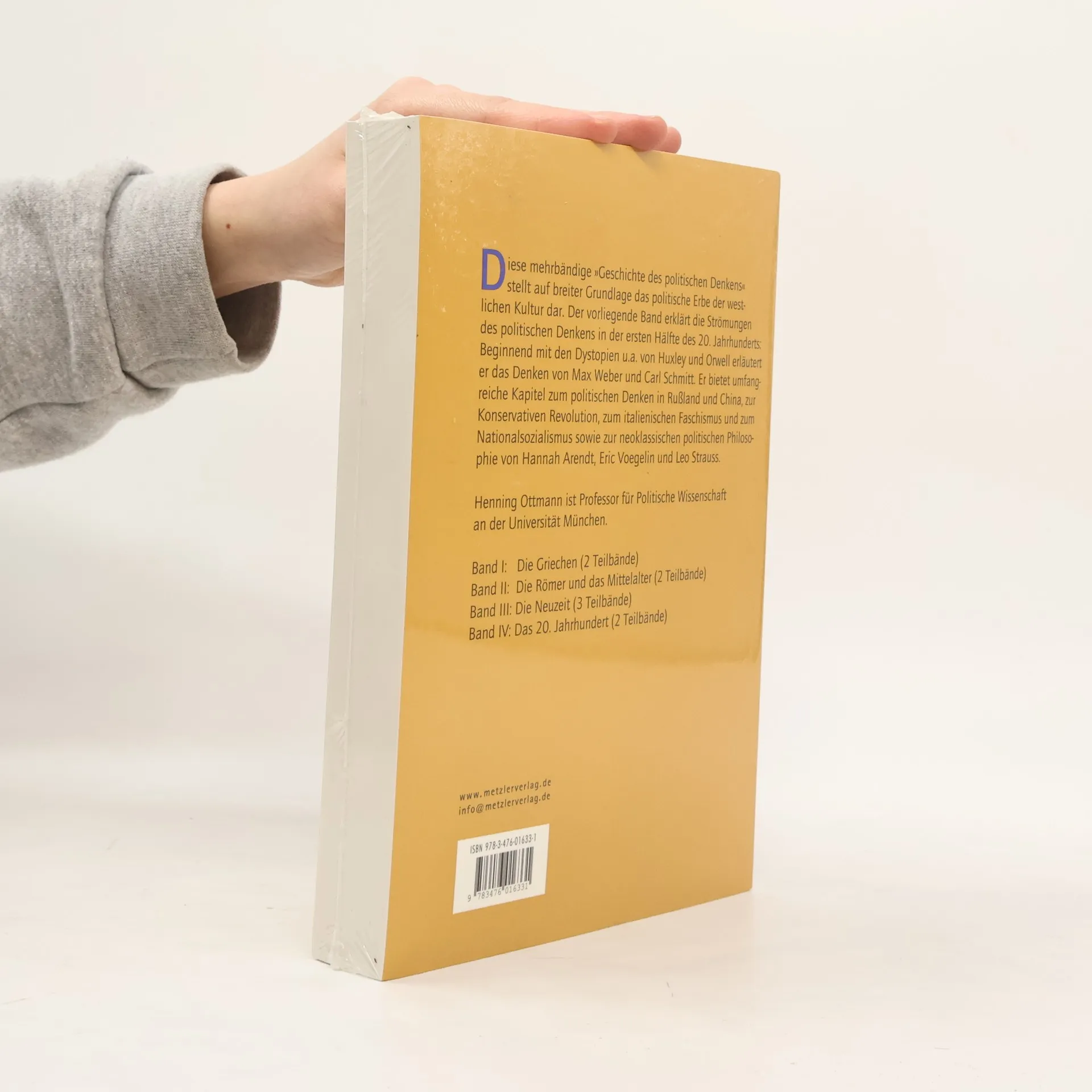 Die politische Kultur der westlichen Welt in einer breit angelegten Gesamtschau. Von den Griechen und ihrer Entdeckung von Politik und Demokratie, über die Römer und die christliche Welt bis zur Gegenwart, die vom Kampf um Menschenrechte und dem Totalitarismus zugleich gezeichnet ist, wird das ganze Spektrum des Politischen Denkens vorgestellt. Band 4/1: Beginnend mit den Dystopien von Aldous Huxley und George Orwell wird das Denken von Max Weber und Carl Schmitt sowie die neoklassische politische Philosophie von Hannah Arendt und Leo Strauss erläutert. Umfangreiche Kapitel beleuchten außerdem das politische Denken in Russland und China, die Konservative Revolution sowie den italienischen Faschismus und den Nationalsozialismus. Mit Kurzbiografien und ausführlichen Bibliografien der Primär- und Sekundärliteratur.