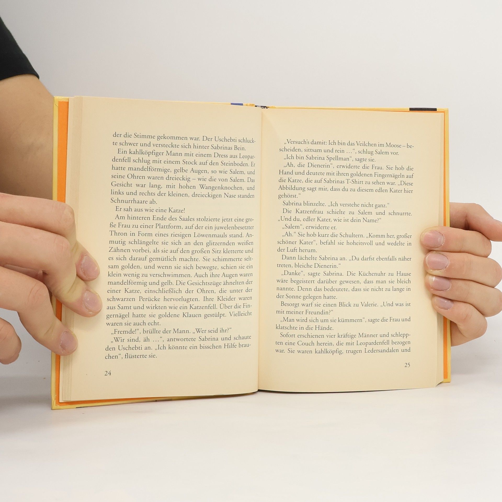 Nach einem märchenhaften Urlaub in Ägypten bringt Tante Vesta ein tolles Souvenir von den Pyramiden mit: eine magische Tonfigur, die Sabrina bei der Hausarbeit helfen soll. Aber stattdessen befördert sie Sabrina, ihren Kater Salem und ihre Freundin Valerie zurück ins alte Ägypten. Salem ist ausser sich vor Freude – bei den alten Ägyptern werden Katzen nämlich als Götter verehrt! Hier könnte er es für immer aushalten. Doch Sabrina und Valerie wollen wieder zurück in die Gegenwart. Als die ägyptische Katzengöttin Bast sich in den schwarzen Kater verliebt, wird es richtig brenzlig. Bast belegt Salem mit einem Liebeszauber und sperrt seine Reisegefährtinnen in das Labyrinth der grossen Pyramide. Kann Sabrina ihren Kater aus dem Bann der Katzengöttin befreien und in die Gegenwart zurückkehren?
