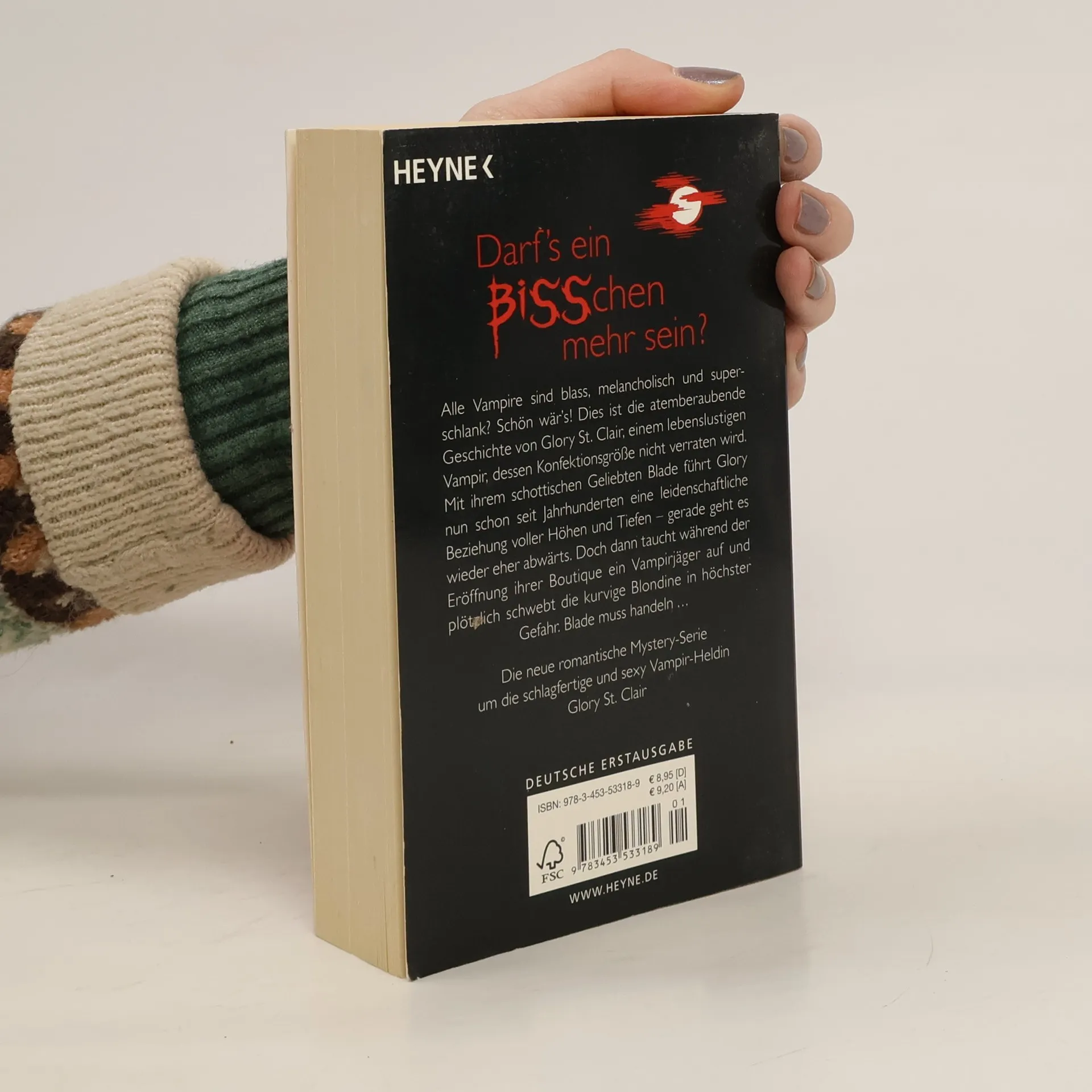 Darf’s ein BISSchen mehr sein? Bridget Jones goes Vampire! Alle Vampire sind blass und superschlank? Schön wär’s! Mein Name ist Gloria St. Claire, ich bin ein Vampir, und meine Konfektionsgröße verrate ich nicht. Mit meinem schottischen Geliebten geht es nun schon seit Jahrhunderten auf und ab, gerade eher abwärts. Und jetzt taucht auch noch dieser Vampirjäger auf und will mir das Leben schwermachen. Aber nicht mit mir – jetzt wird zurückgebissen! Die neue große Mystery-Serie um eine unglaublich liebenswerte und schlagfertige Heldin. Witzig und sexy!