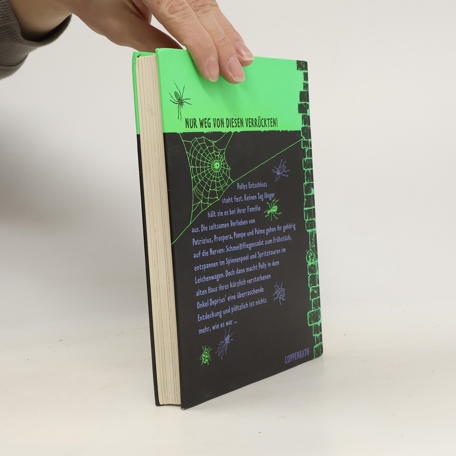 Nur weg von diesen Verrückten! Pollys Entschluss steht fest. Keinen Tag länger hält sie es mit ihrer Familie aus. Die seltsamen Vorlieben von Patrizius, Prospera, Pampe und Palme gehen ihr gehörig auf die Nerven: Schmeißfliegensalat zum Frühstück, entspannen im Spinnenpool und Spritztouren im Leichenwagen. Doch dann macht Polly in dem alten Haus ihres kürzlich verstorbenen Onkel Deprius eine ungeahnte Entdeckung und plötzlich ist nichts mehr, wie es war. Mit diesem Buch sind Lachkrämpfe garantiert!