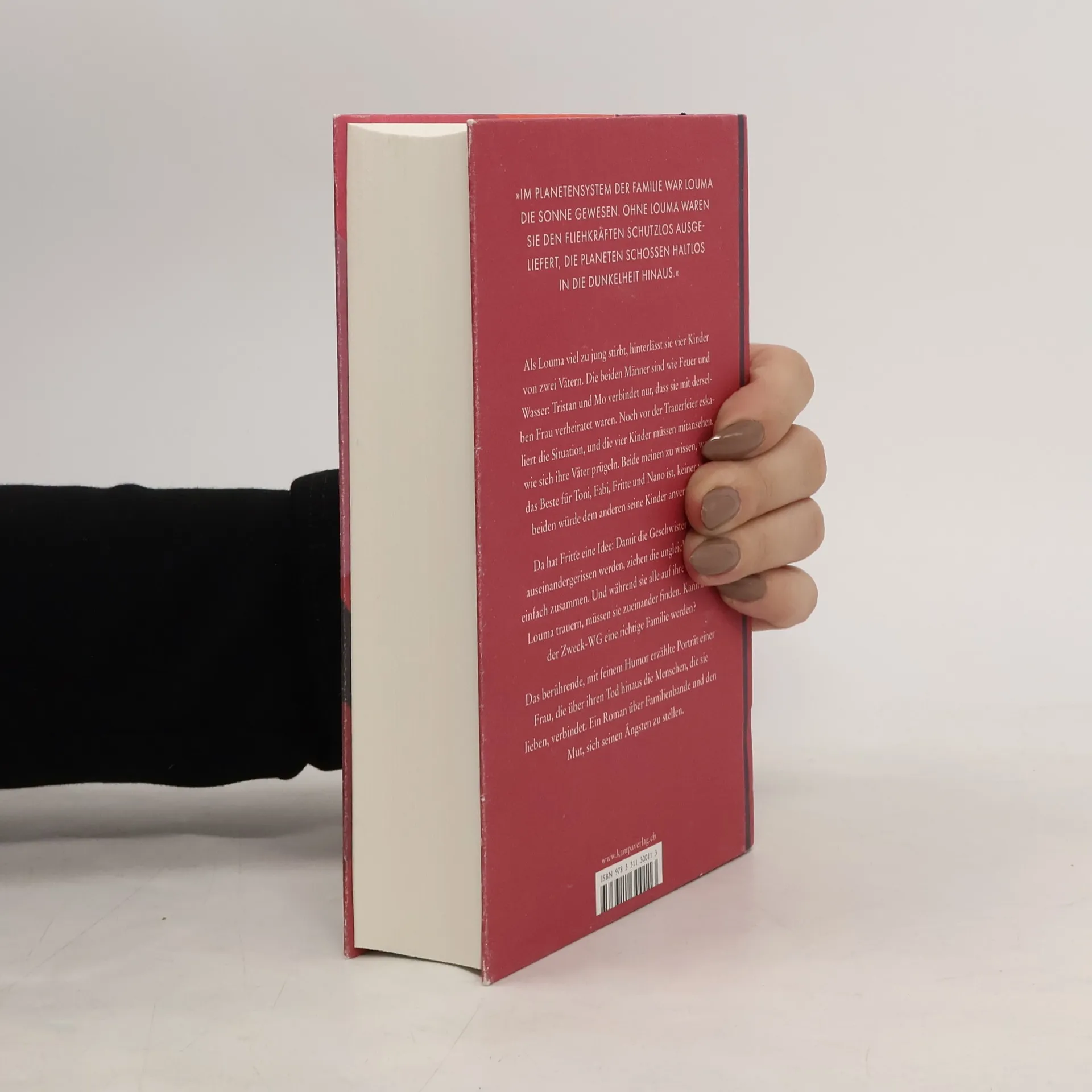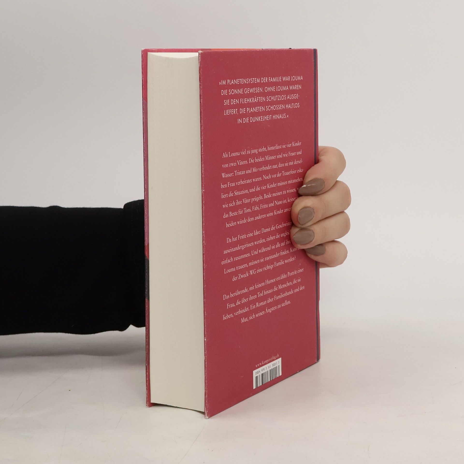 Als Louma viel zu jung stirbt, hinterlässt sie vier Kinder von zwei Vätern. Die beiden Männer sind wie Feuer und Wasser, Tristan und Mo verbindet nur, dass sie mit derselben Frau verheiratet waren. Noch ehe Louma beerdigt ist, eskaliert die Situation, und die vier Kinder müssen mitansehen, wie sich ihre Väter prügeln. Beide meinen zu wissen, was das Beste für Toni, Fabi, Fritte und Nano ist, keiner von beiden würde dem anderen seine Kinder anvertrauen. Da hat Fritte eine Idee: Damit die Geschwister nicht auseinandergerissen werden, ziehen die ungleichen Väter einfach zusammen. Und während sie alle auf ihre Weise um Louma trauern, müssen sie zueinander finden. Kann aus der Zweck-WG eine richtige Familie werden? Das berührende, mit feinem Humor erzählte Porträt einer Frau, die über ihren Tod hinaus die Menschen, die sie lieben, verbindet. Ein Roman über Familienbande und den Mut, sich seinen Ängsten zu stellen.