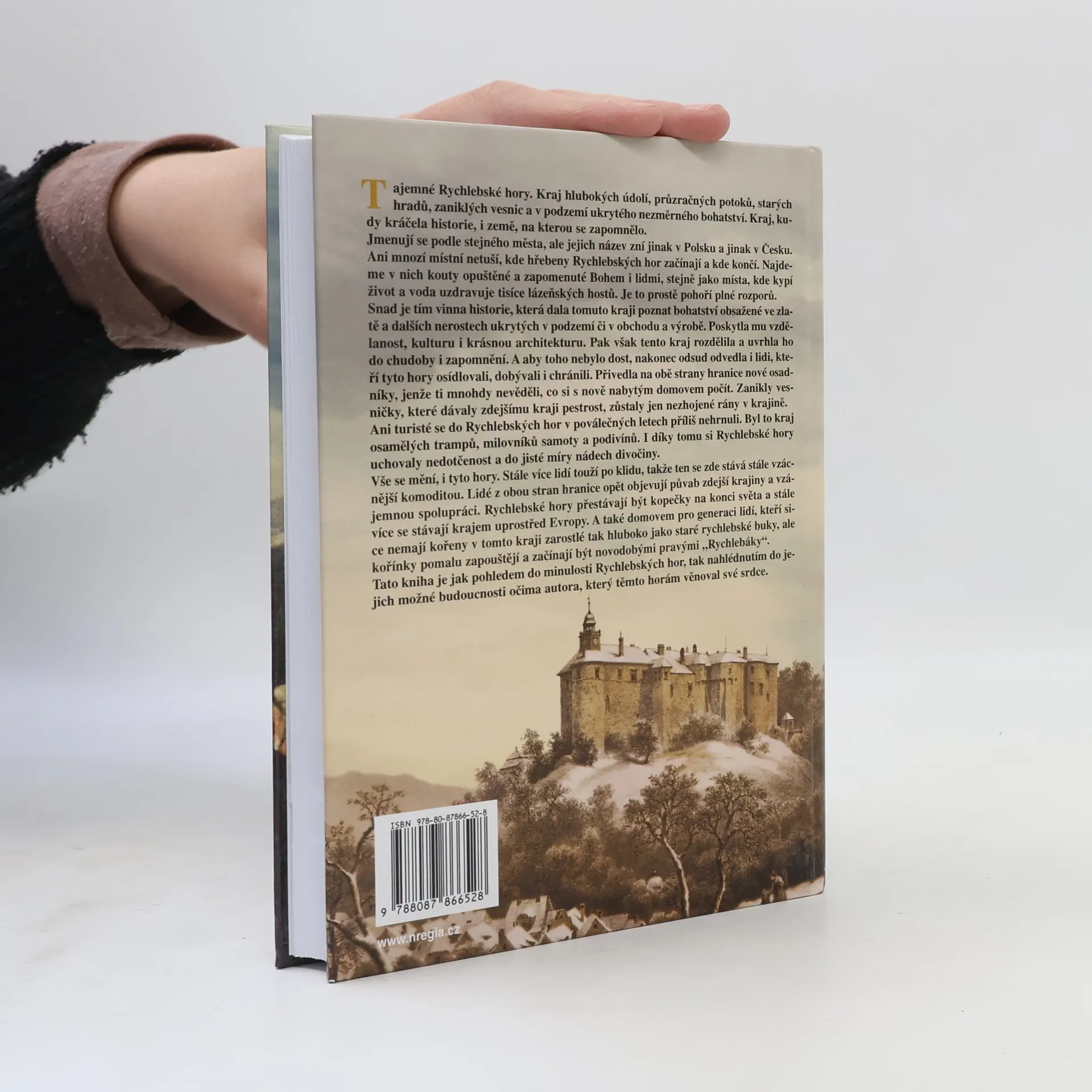 Tajemné Rychlebské hory jsou krajem hlubokých údolí, průzračných potoků, starých hradů a zaniklých vesnic, skrývajícím bohatství v podzemí. Historie zde zanechala stopy, ale kraj byl také zapomenut. Jeho název se liší v Polsku a Česku, a mnozí místní netuší, kde hřebeny hor začínají a končí. Rychlebské hory nabízejí opuštěné kouty, ale i místa plná života a léčivé vody pro lázeňské hosty, což vytváří kontrast v tomto pohoří. Historie přinesla bohatství v podobě zlata a nerostů, ale také rozdělila kraj, uvrhla ho do chudoby a zapomnění a odvedla jeho obyvatele. Noví osadníci, kteří přišli na obě strany hranice, často nevěděli, jak s novým domovem naložit, což vedlo k zániku vesniček a nezhojeným ranám v krajině. Po válce se turisté do hor nehrnuli, a tak zůstaly nedotčené, oblíbené mezi trampy a milovníky samoty. Dnes se situace mění; lidé objevují krásu krajiny a spolupráci napříč hranicemi. Rychlebské hory se stávají místem uprostřed Evropy, domovem pro novou generaci, která pomalu zapouští kořeny. Kniha nabízí pohled do minulosti hor a nahlédnutí do jejich možné budoucnosti očima autora, který těmto horám věnoval své srdce.