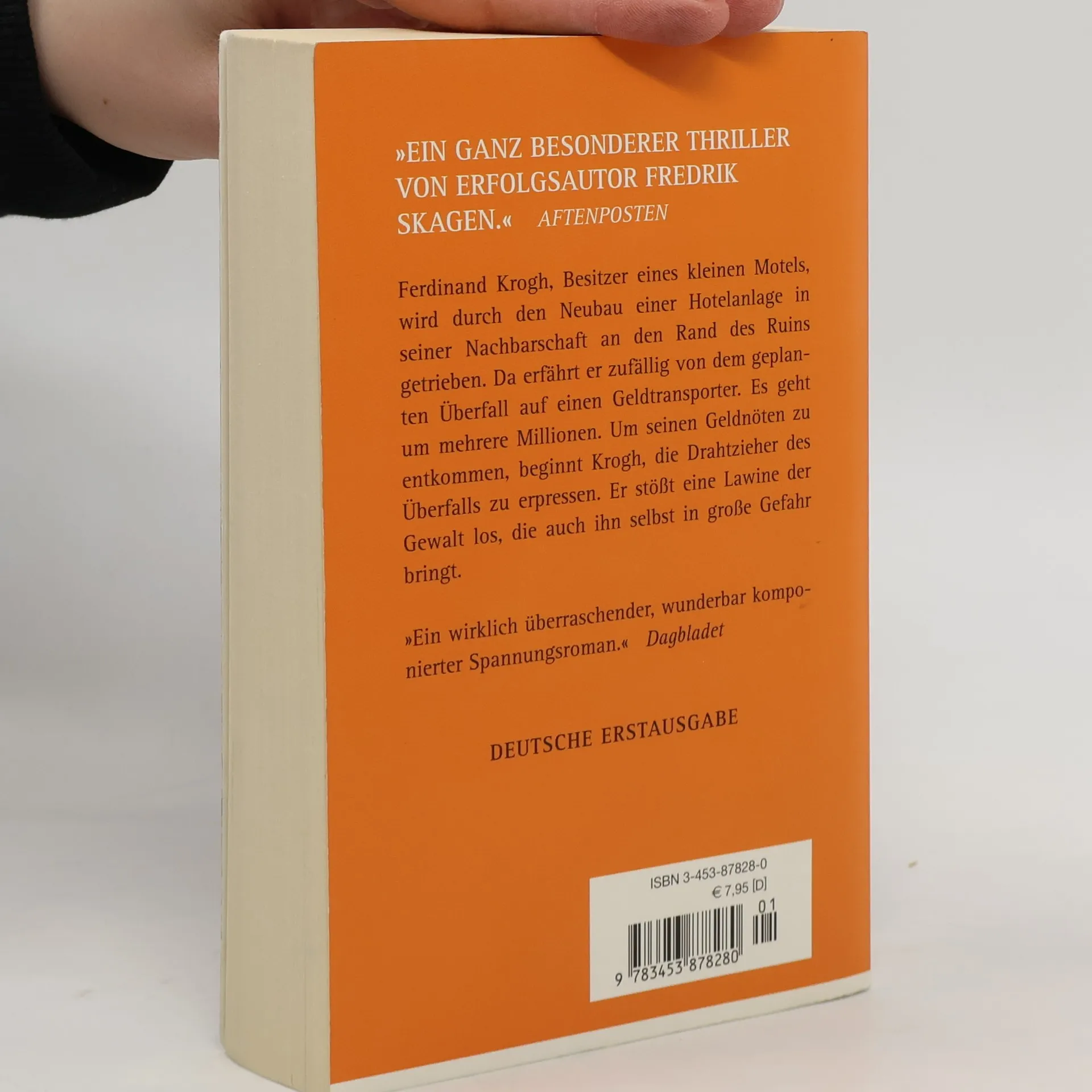 Es ist reiner Zufall, dass Motelbesitzer Ferdinand Krogh von dem geplanten Überfall auf einen Geldtransporter erfährt. Da er enorme Geldsorgen hat, beginnt er, die Drahtzieher zu erpressen. Damit stößt er eine Lawine der Gewalt los, die auch sein eigenes Leben in große Gefahr bringt. „Ein ganz besonderer Thriller von Erfolgsautor Fredrik Skagen.“