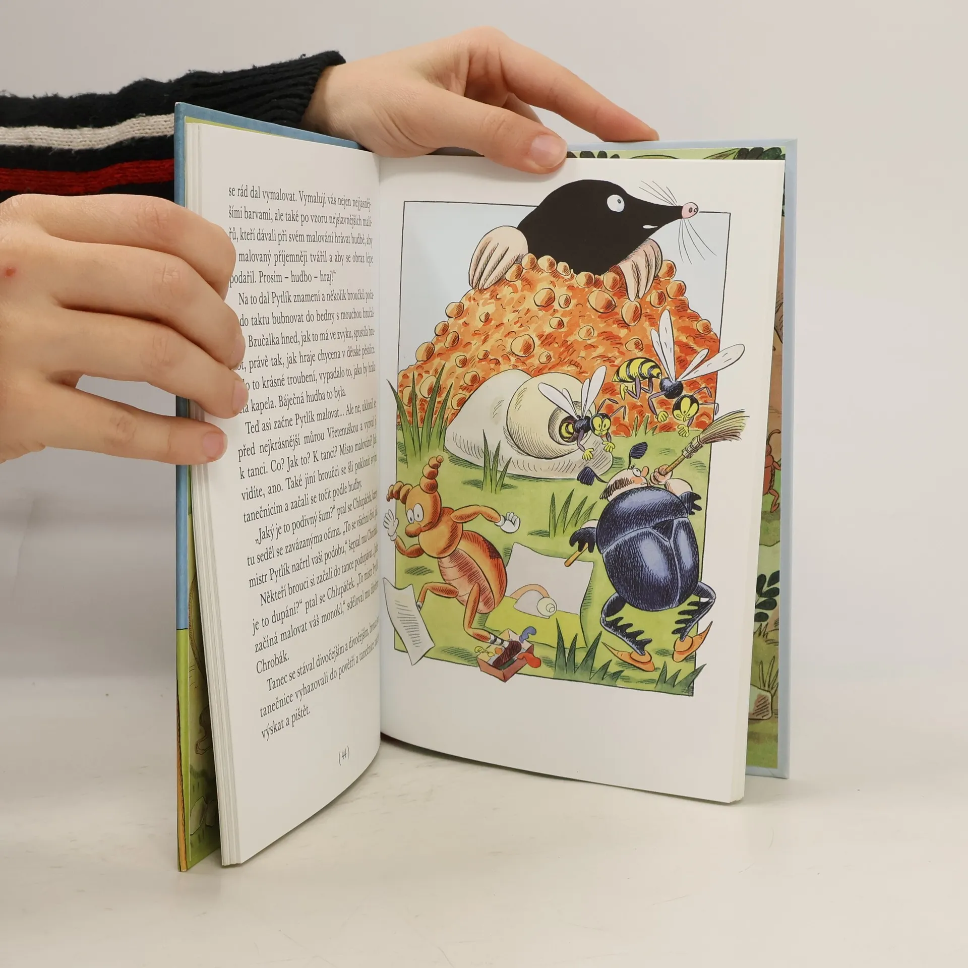 Brouk Pytlík si otevřel školu kreslení a malování! Docela náhodou, protože musel napravit, co způsobil, když se snažil chudáčkovi motýlovi, který se právě líhl z kukly, nacpat zpátky křídla, a dočista mu zničil krásnou malbu. Naštěstí se mu to podařilo hbitě napravit, a pak už se mu zakázky jen hrnuly – tu naučil slimáka malovat, přestože nemá ručičky ani nožičky (hádejte jak!), pan Tesařík si nemohl vynachválit portrét s dlouhatánskými pravými žíněnými vousy a na Pytlíka si nepřišla ani Stužkonoska Vrbová, přestože se mu pořád ztrácela a zase objevovala. Jeho škola jen vzkvétala, i když broučci museli obědvat právě to, čemu se právě podobaly jejich malířské výtvory. Nakonec to všichni dotáhli nejméně na švestkové knedlíky. Ale nic se nemá přehánět a Pytlík byl nakonec rád, že vyvázl zpod pěstiček rozzuřených broučků se zdravými krovkami! Není divu, že se na něj tak rozzlobili! Přečtěte si, jak to všechno bylo, a uvidíte.