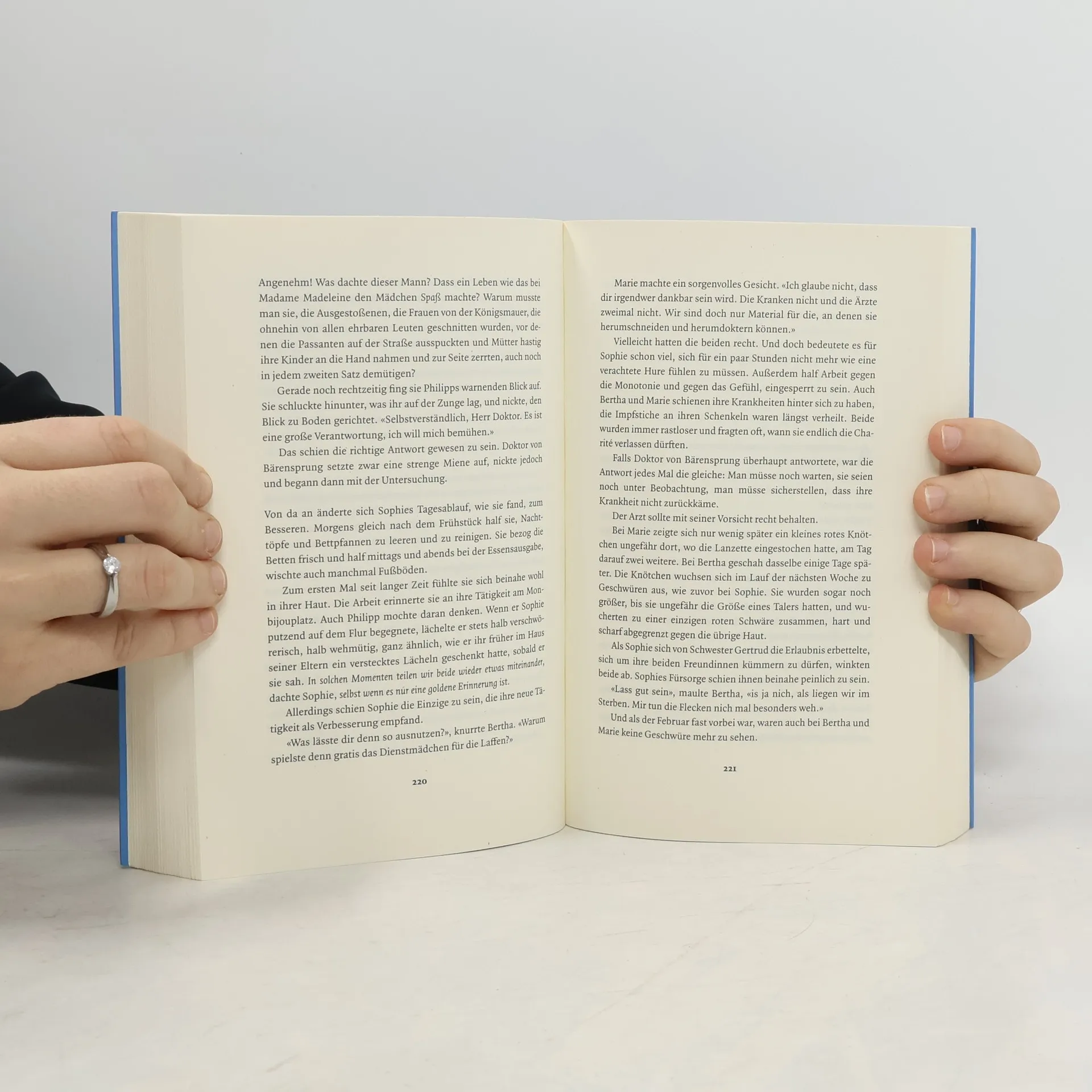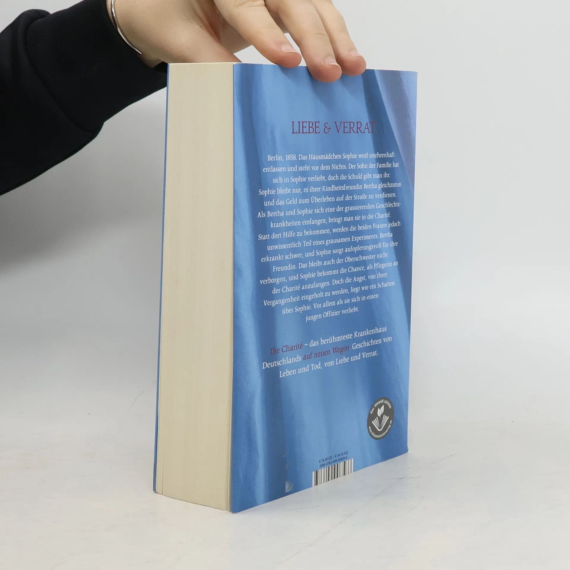Die Bestsellerreihe geht endlich weiter! Die Charité – das berühmteste Krankenhaus Deutschlands auf neuen Wegen. Geschichten von Leben und Tod, von Liebe und Verrat. Berlin, 1858. Das Hausmädchen Sophie wird unehrenhaft entlassen und steht vor dem Nichts. Der Sohn der Familie hat sich in Sophie verliebt, doch die Schuld gibt man ihr. Sophie bleibt nur, es ihrer Kindheitsfreundin Bertha gleichzutun und das Geld zum Überleben auf der Straße zu verdienen. Als Bertha und Sophie sich eine der grassierenden Geschlechtskrankheiten einfangen, bringt man sie in die Charité. Statt dort Hilfe zu bekommen, werden die beiden Frauen jedoch unwissentlich Teil eines grausamen Experiments. Bertha erkrankt schwer, und Sophie sorgt aufopferungsvoll für ihre Freundin. Das bleibt auch der Oberschwester nicht verborgen, und Sophie bekommt die Chance, als Pflegerin an der Charité anzufangen. Doch die Angst von ihrer Vergangenheit eingeholt zu werden, liegt wie ein Schatten über Sophie. Vor allem als sie sich in einen jungen Offizier verliebt.