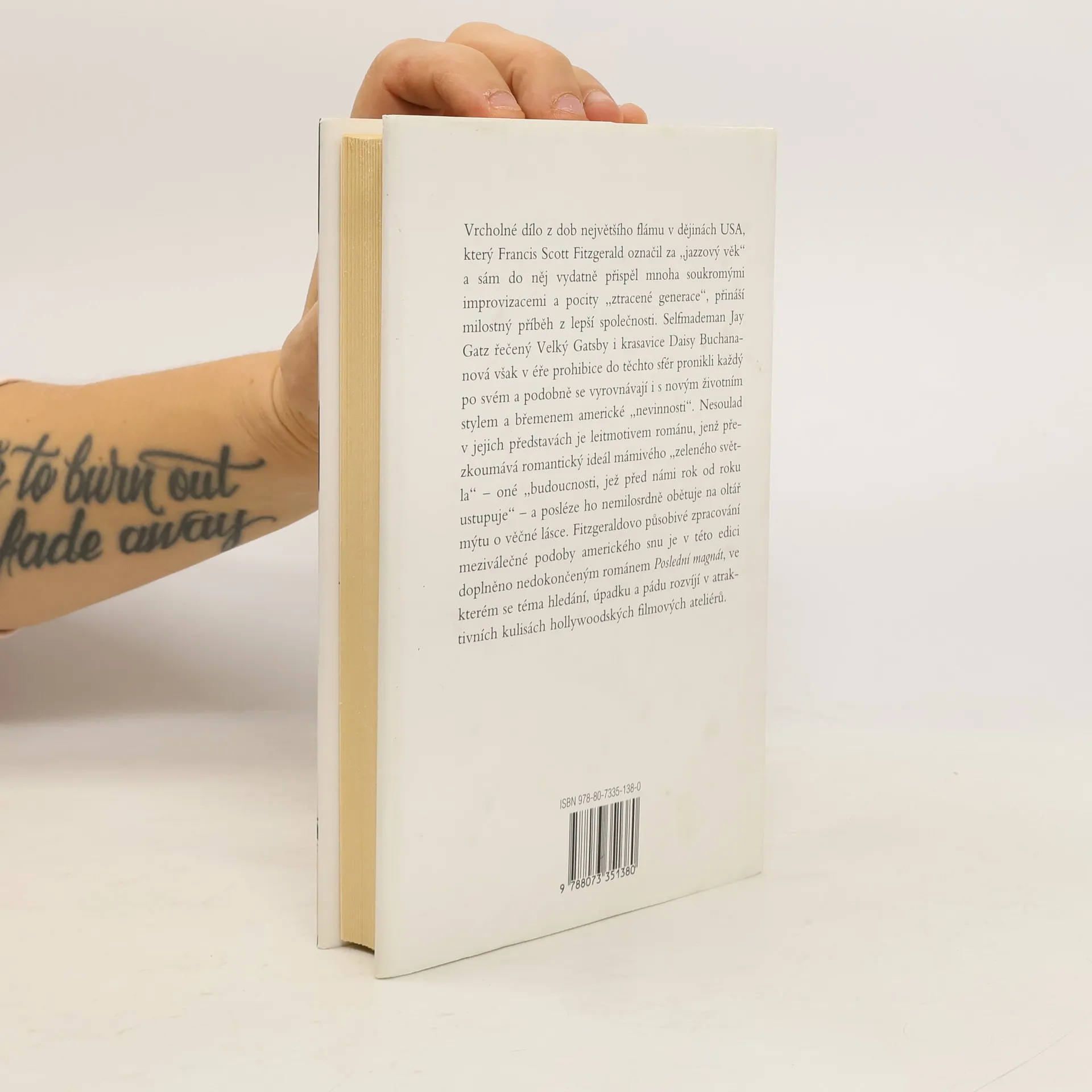 Velký Gatsby (1925), vrcholné dílo z dob největšího flámu v dějinách USA, který Francis Scott Fitzgerald označil za „jazzový věk“ a sám do něj vydatně přispěl mnoha soukromými improvizacemi a pocity „ztracené generace“, přináší milostný příběh z lepší společnosti. Selfmademan Jay Gatz řečený Velký Gatsby i krasavice Daisy Buchananová však v éře prohibice do těchto sfér pronikli každý po svém a podobně se vyrovnávají i s novým životním stylem a břemenem americké „nevinnosti“. Nesoulad v jejich představách je leitmotivem románu, jenž přezkoumává romantický ideál mámivého „zeleného světla“ oné „budoucnosti, jež před námi rok od roku ustupuje“ a posléze ho nemilosrdně obětuje na oltář mýtu o věčné lásce. Fitzgeraldovo působivé zpracování meziválečné podoby amerického snu je v této edici doplněno nedokončeným románem Poslední magnát (1941), ve kterém se téma hledání, úpadku a pádu rozvíjí v atraktivních kulisách hollywoodských filmových ateliérů.
