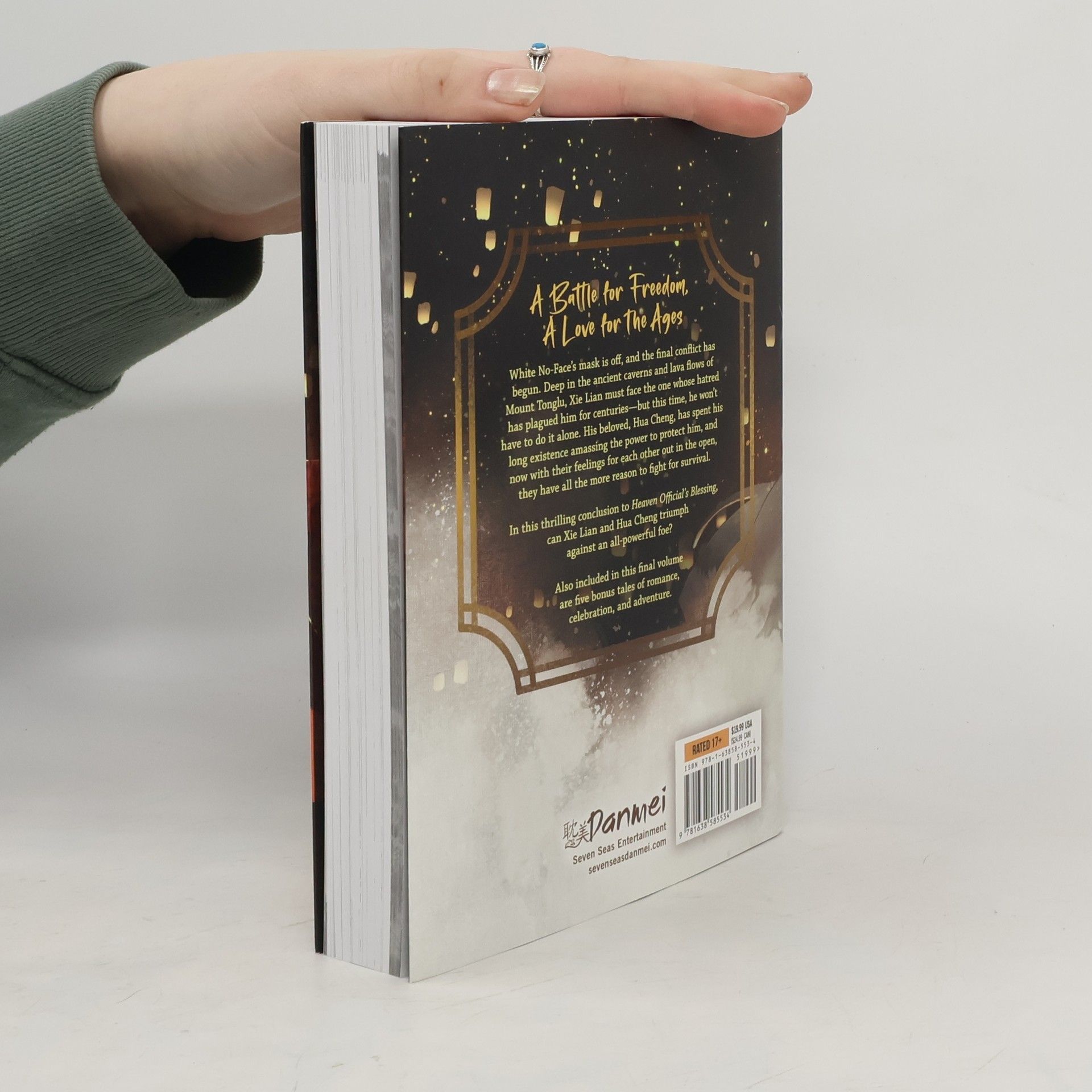NEW YORK TIMES BEST SELLER! The blockbuster danmei/Boys' Love novels from China that inspired the animated series! In this final book (Volume 8), read the conclusion to this epic historical fantasy about a prince and the mysterious man by his side, in English for the very first time. Also includes bonus stories! White No-Face's mask is off, and the final conflict has begun. Deep in the ancient caverns and lava flows of Mount Tonglu, Xie Lian must face the one whose hatred has plagued him for centuries--but this time, he won't have to do it alone. His beloved, Hua Cheng, has spent his long existence amassing the power to protect him, and now with their feelings for each other out in the open, they have all the more reason to fight for survival. In this thrilling conclusion to Heaven Official's Blessing, can Xie Lian and Hua Cheng triumph against an all-powerful foe? Also included in this final volume are five bonus tales of romance, celebration, and adventure.