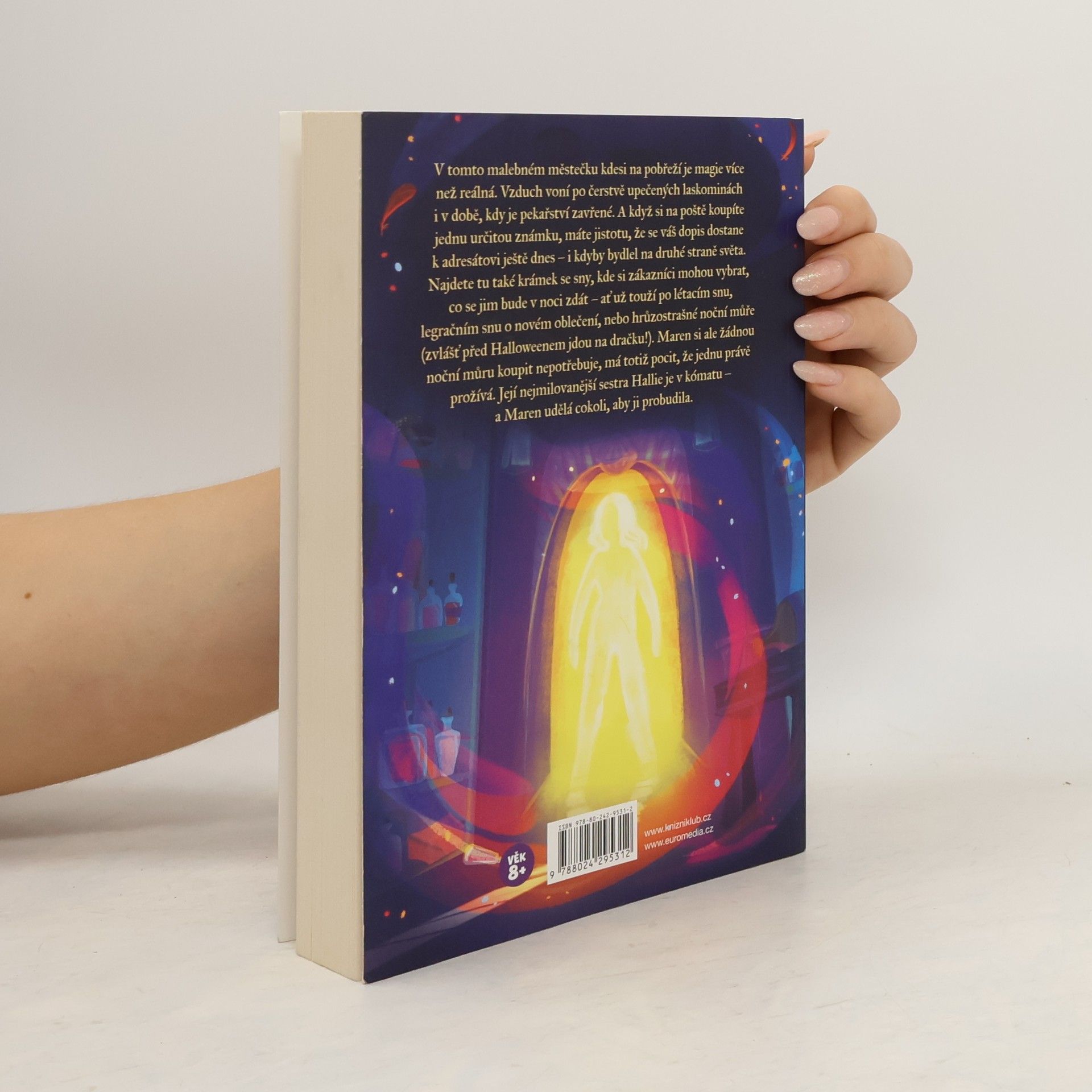 V tomto malebném městečku kdesi na pobřeží je magie více než reálná. Vzduch voní po čerstvě upečených laskominách i v době, kdy je pekařství zavřené. A když si na poště koupíte jistou konkrétní známku, máte jistotu, že se váš dopis dostane k adresátovi ještě dnes – i kdyby bydlel na druhé straně světa. Najdete tu také krámek se sny, kde si zákazníci mohou vybrat, co se jim bude v noci zdát – ať už touží po létacím snu, legračním snu o novém oblečení, nebo hrůzostrašné noční můře (zvlášť před Halloweenem jdou na dračku!). Maren si ale žádnou noční můru koupit nepotřebuje, má totiž pocit, že jednu právě prožívá. Její nejmilovanější sestra Hallie je v kómatu – a Maren udělá cokoli, aby ji probudila.