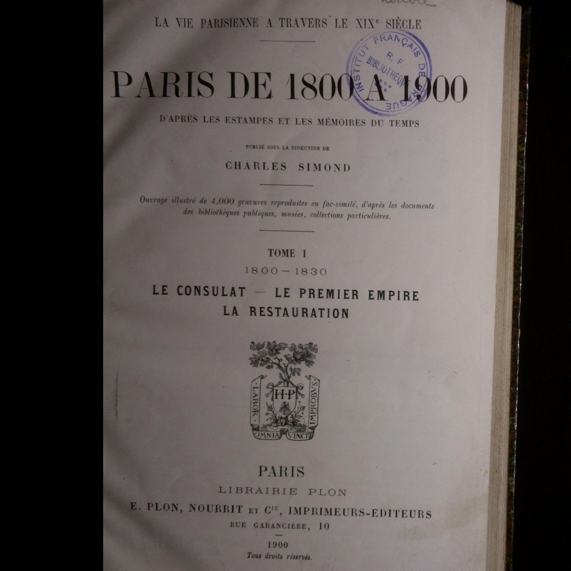 Paris de 1800 A 1900. Tome 1.