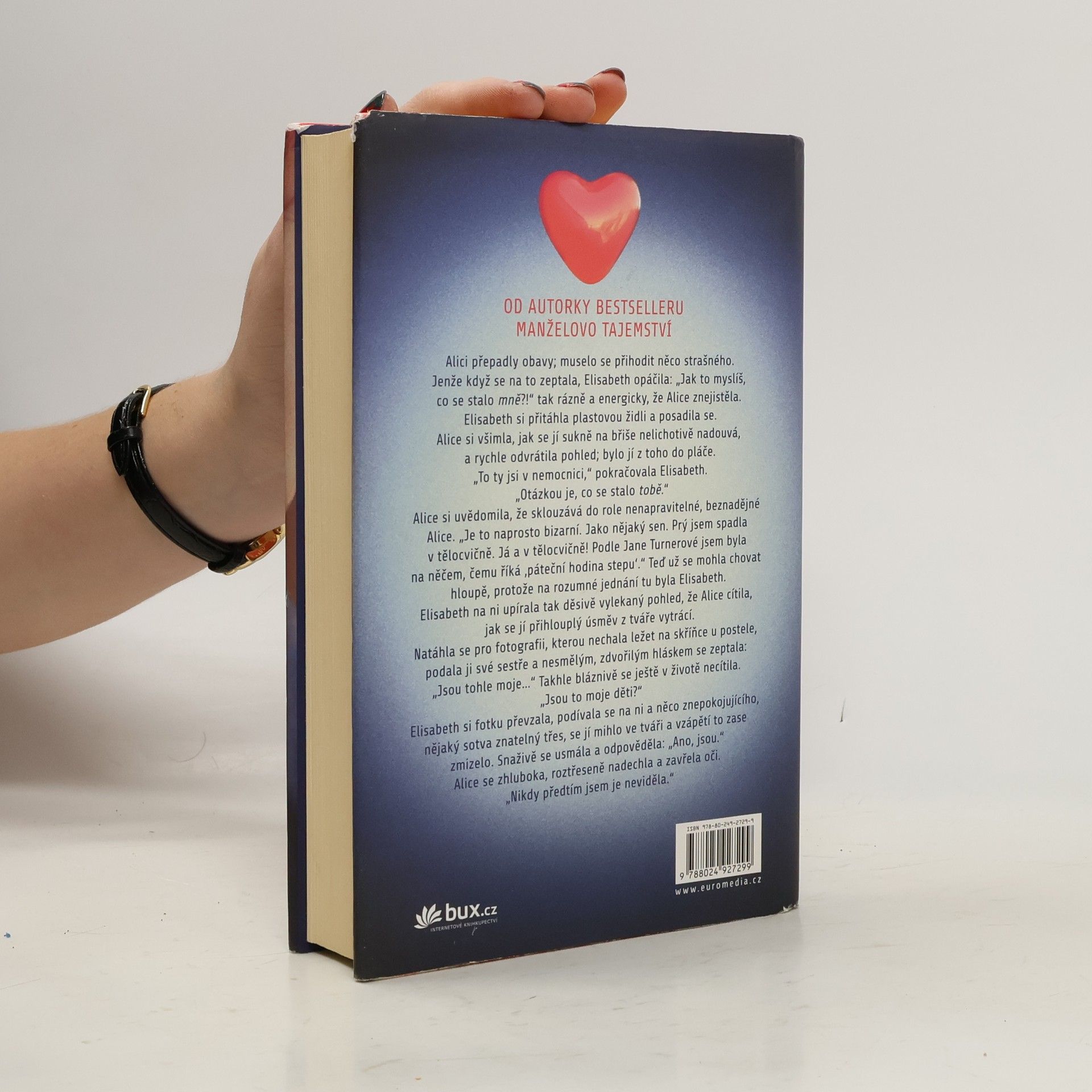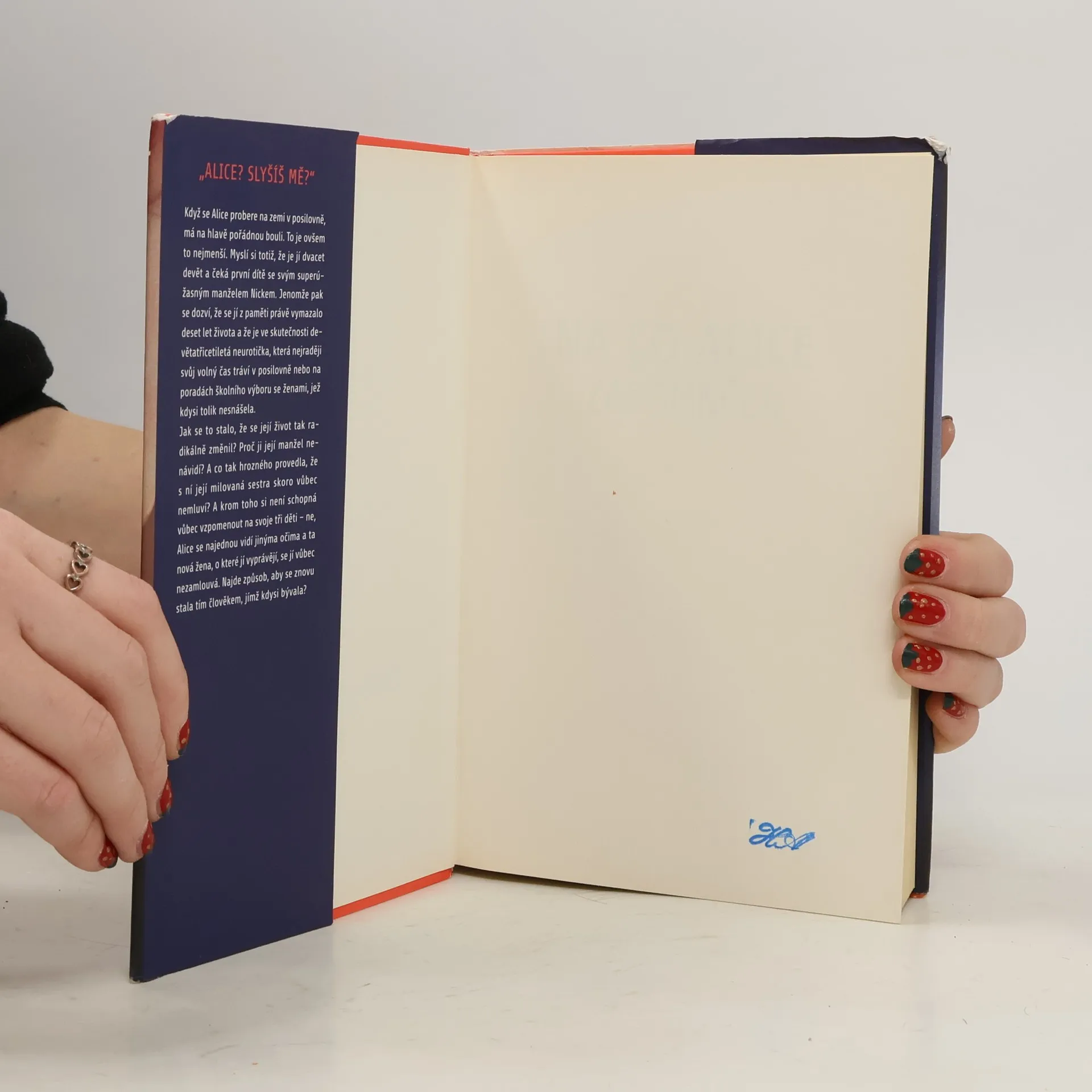 Když se Alice probere na zemi v posilovně, má na hlavě pořádnou bouli a myslí si, že je jí dvacet devět a čeká první dítě se svým superúžasným manželem Nickem. Jenomže pak se dozví, že se jí z paměti právě vymazalo deset let života a že je ve skutečnosti devětatřicetiletá neurotička, která nejraději tráví svůj volný čas v posilovně nebo na poradách školního výboru se ženami, jež kdysi nesnášela. Jak se to stalo, že se její život tak radikálně změnil? Proč ji její manžel nenávidí? Co tak hrozného provedla, že s ní její milovaná sestra skoro nemluví? A do toho si není schopná vůbec vzpomenout na svoje tři děti – ne, Alice se najednou vidí jinýma očima a ta nová žena, o které jí vyprávějí, se jí vůbec nezamlouvá. Najde způsob, aby se znovu stala tím člověkem, kterým bývala?