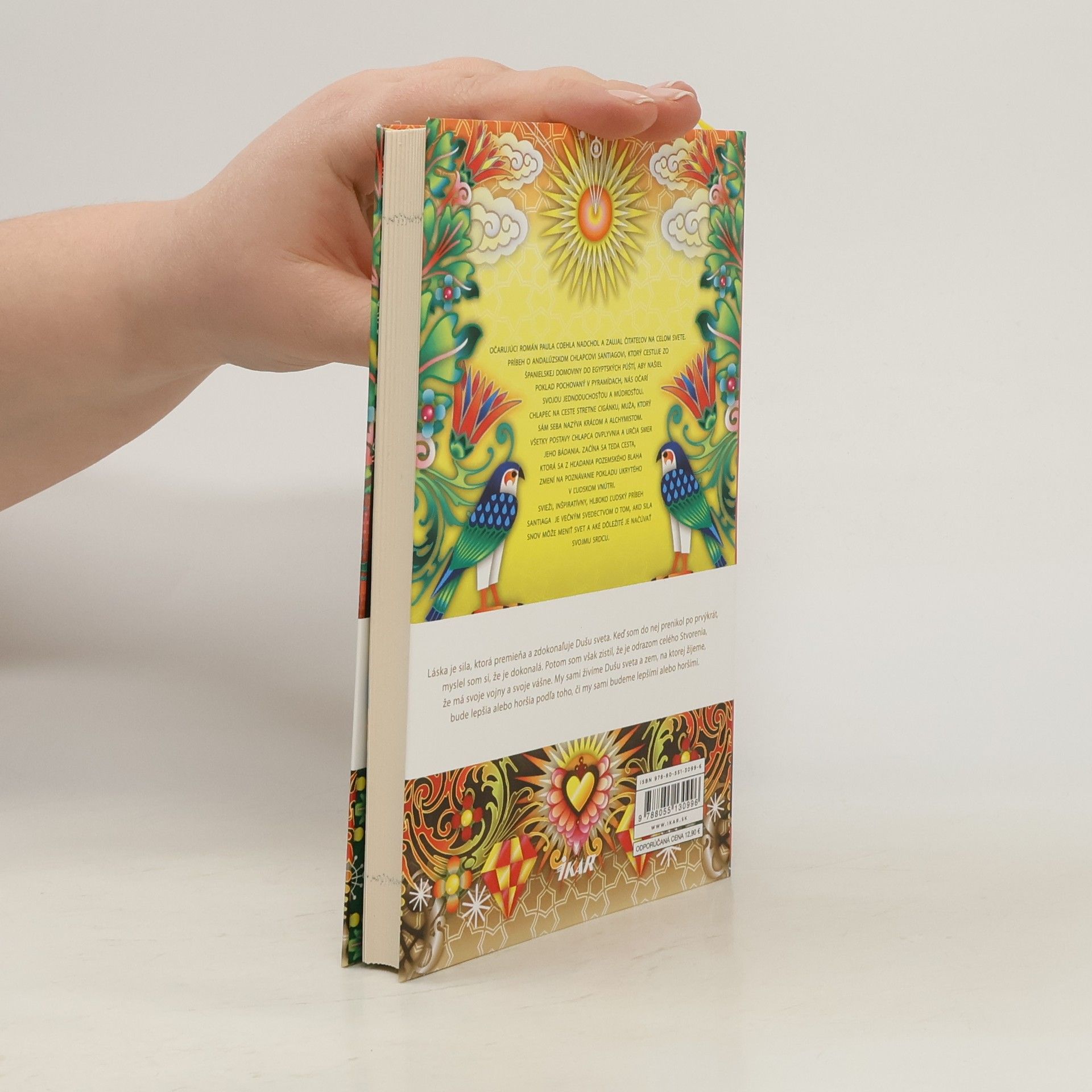 Príbeh o pastierovi Santiagovi, ktorý cestuje zo španielskej domoviny do egyptských púští, aby našiel poklad pochovaný v pyramídach, očarí svojou jednoduchosťou a múdrosťou. Svieži, inšpiratívny, hlboko ľudský príbeh Santiaga je večným svedectvom o tom, ako sila snov môže meniť svet a aké dôležité je načúvať svojmu srdcu. Lebo nezabúdajte: Tvoje srdce je tam, kde je tvoj poklad.