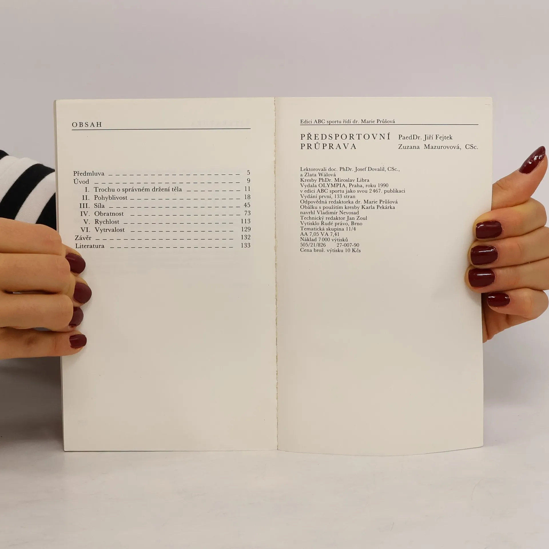 Předsportovní průprava / Jiří Fejtek, Zuzana Mazurovová. Předmluva Petr Průša. Lektorovali doc. PhDr. Josef Dovalil, CSc. a Zlata Wálová. Kresby PhDr. Miroslav Libra. Obálku s použitím kresby Karla Pekárka navrhl Vladimír Nevosad. Vydání první.