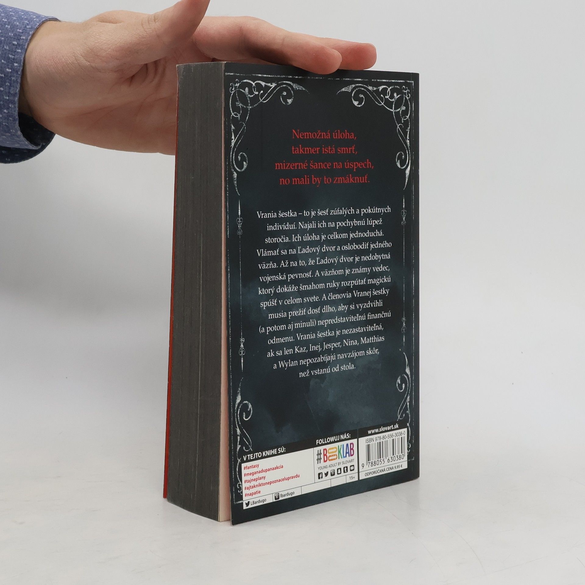 Šesť nebezpečných vyvrheľov. Jedna neuskutočniteľná úloha. Vrania šestka – to je šesť zúfalých a pokútnych indivíduí: trestanec (čo prahne po pomste), ostrostrelec (ktorý neodolá žiadnej stávke), zbeh (čo zutekal pred životom v luxuse jednej z najbohatších rodín), špiónka (známa ako Prízrak), lámačka (čo sa pretĺka spodinou sveta pomocou mágie) a zlodej (s darom vyviaznuť živý zovšadiaľ). Najali ich na pochybnú lúpež storočia. Ich úloha je celkom jednoduchá. Vlámať sa na Ľadový dvor a oslobodiť jedného väzňa. Až na to, že Ľadový dvor je nedobytná vojenská pevnosť, ktorú zatiaľ nikto, ale naozaj nikto nezdolal. Väzňom je známy vedec, ktorý dokáže šmahom ruky rozpútať magickú spúšť v celom známom svete. A členovia Vranej šestky musia prežiť dosť dlho, aby si vyzdvihli (a potom aj minuli) svoju nepredstaviteľnú finančnú odmenu. Vrania šestka je nezastaviteľná, ak sa len Kaz, Inej, Jesper, Nina, Matthias a Wylan nepozabíjajú navzájom skôr, než vstanú od stola. http://www.uniknihy.sk/produkt/vrania-sestka/