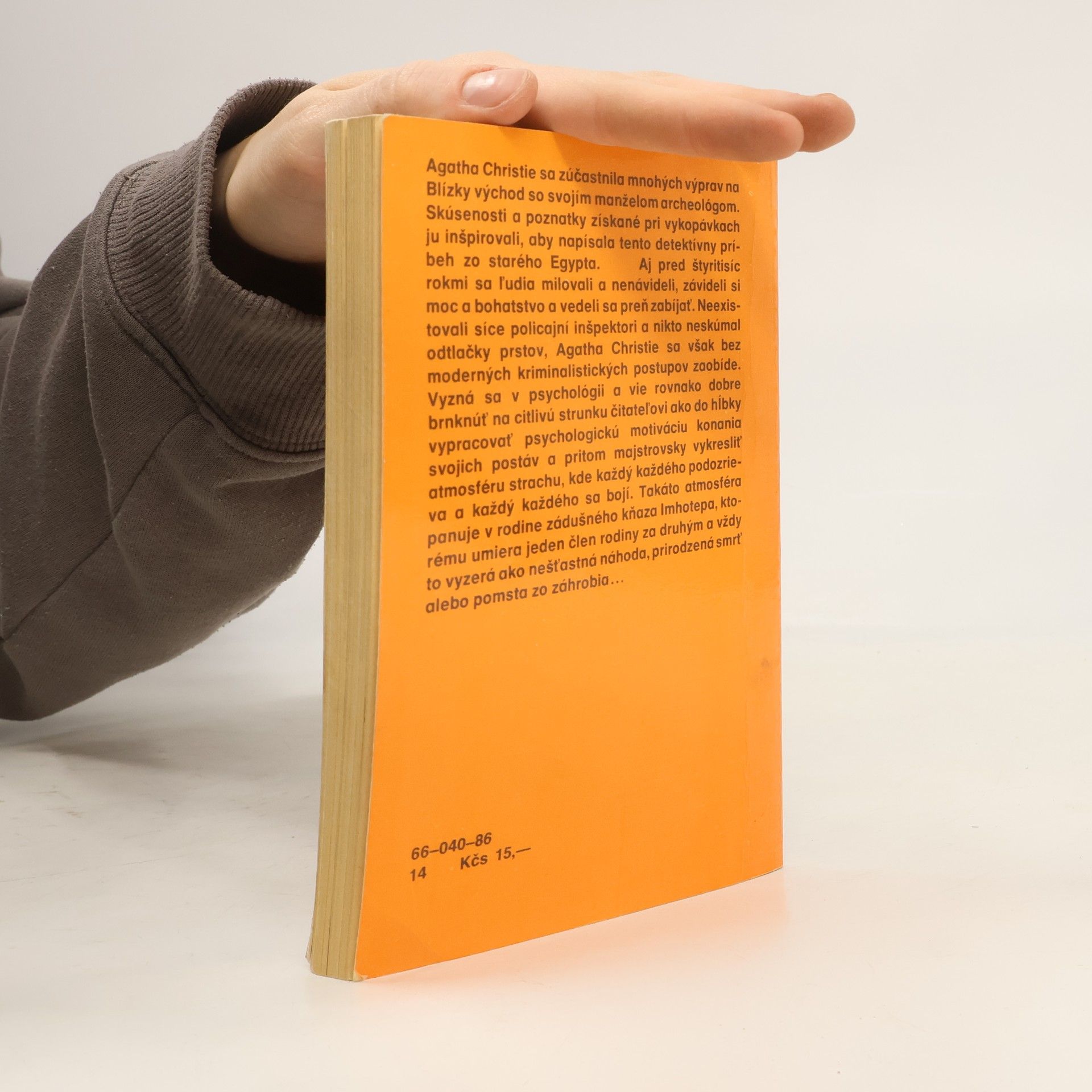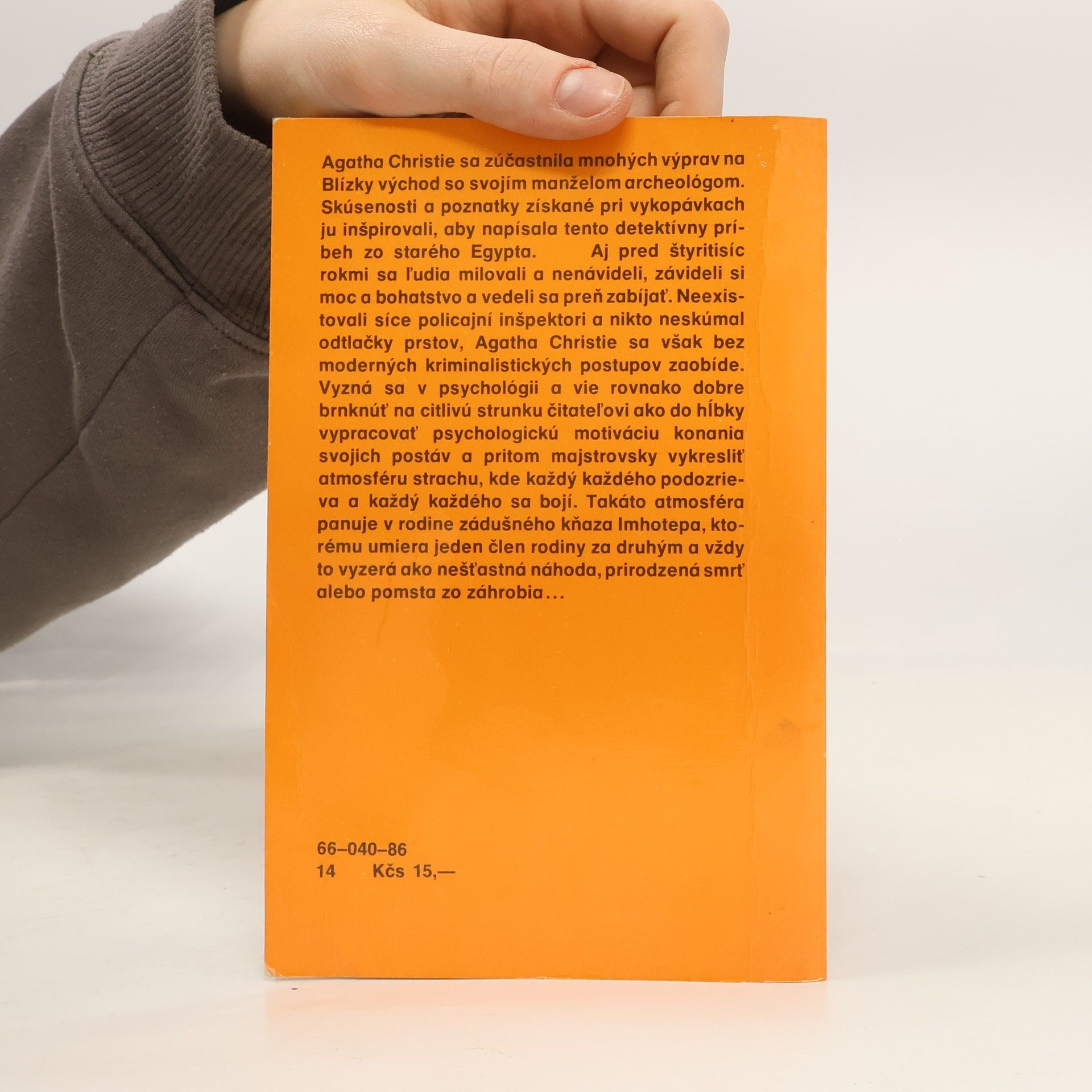 Aj pred štyritisíc rokmi sa ľudia milovali a nenávideli, závideli si moc a bohatstvo a vedeli sa preň zabíjať. Neexistovali síce policajní inšpektori a nikto neskúmal odtlačky prstov, Agatha Christie sa však bez moderných kriminalistických postupov zaobíde. Vyzná sa v psychológii a vie rovnako dobre brnknúť na citlivú strunku čitateľovi ako do hĺbky vypracovať psychologickú motiváciu konania svojich postáv a pritom majstrovsky vykresliť atmosféru strachu, kde každý každého podozrieva a každý každého sa bojí. Takáto atmosféra panuje v rodine zádušného kňaza Imhotepa, ktorému umiera jeden člen rodiny za druhým a vždy to vyzerá ako nešťastná náhoda, prirodzená smrť alebo pomsta zo záhrobia…