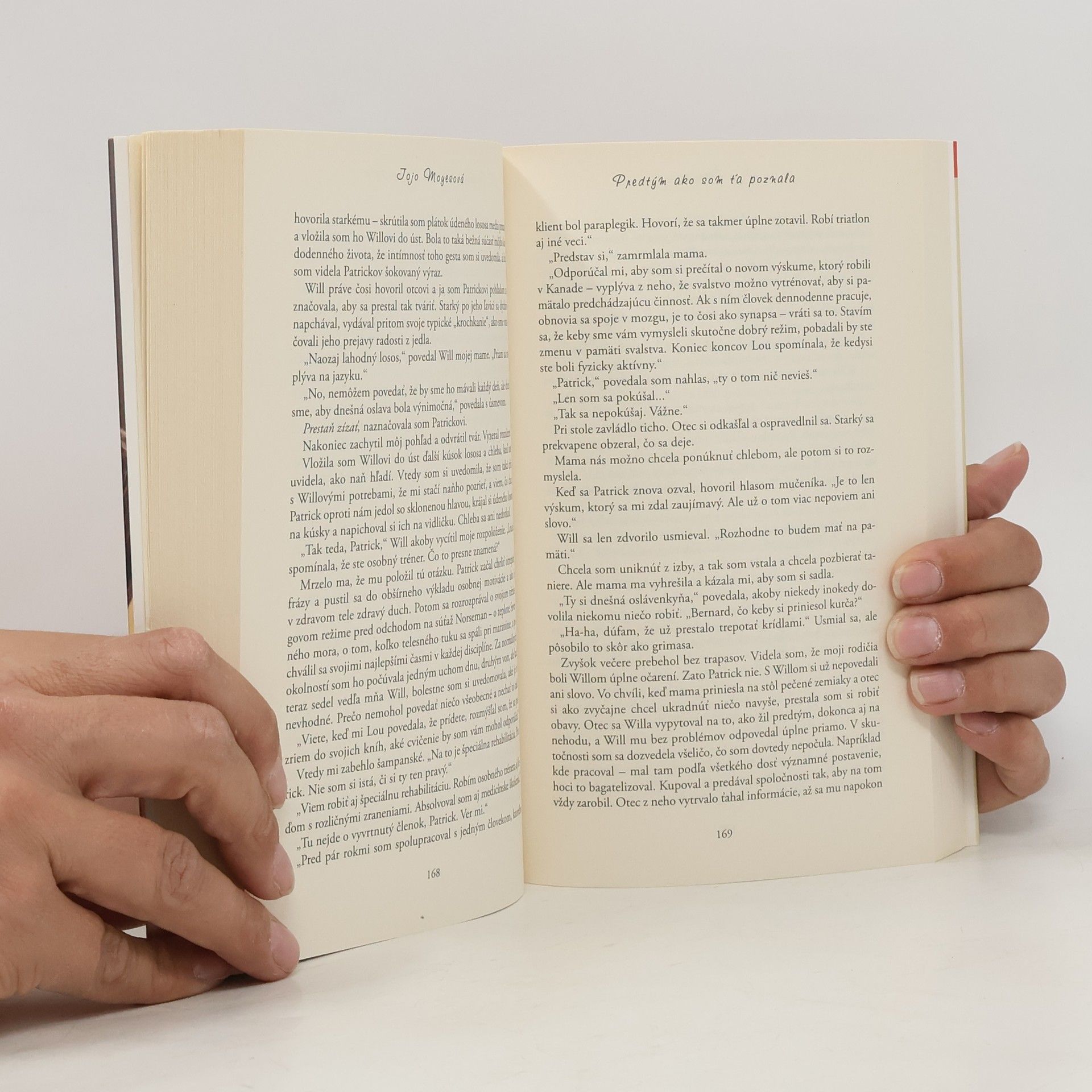 Lou Clarková vie všeličo. Vie, že jej otec si ťažko hľadá prácu, vie, koľko krokov treba prejsť od autobusovej zastávky k rodičovskému domu. Vie, že sa jej páči práca v bistre, a vie, že možno neľúbi svojho priateľa Patricka, oduševneného športovca. Zato nevie nič o klasickej hudbe, nevie, že príde o miesto, a keby tušila, čo ju čaká, asi by prišla o rozum. Will Traynor vie, že po dopravnej nehode stratil chuť do života. Vie, čím bol kedysi, vie, že všetko sa mu teraz zdá malé a neradostné, a veľmi presne vie, ako s tým skoncovať. Zato nevie, že Lou mu vtrhne do života ako farebná búrka. A ani jeden z nich nevie, že jeden druhého navzájom navždy zmenia. Román Predtým ako som ťa poznala má aj voľné pokračovanie. O ďalšom osude hlavných hrdinov autorka napísala knihu s názvom Čo bolo potom.