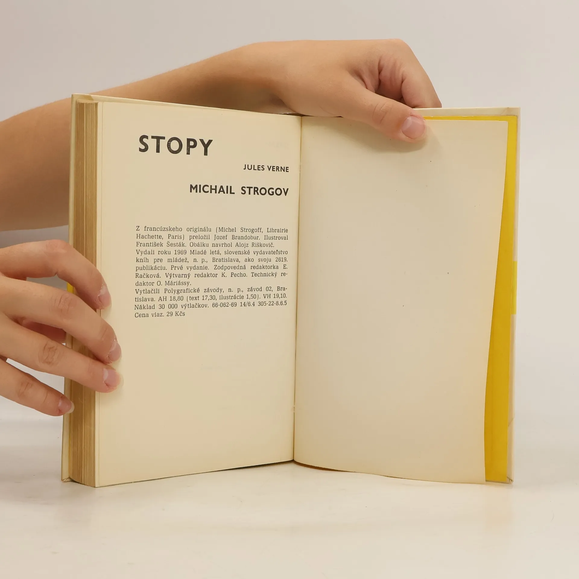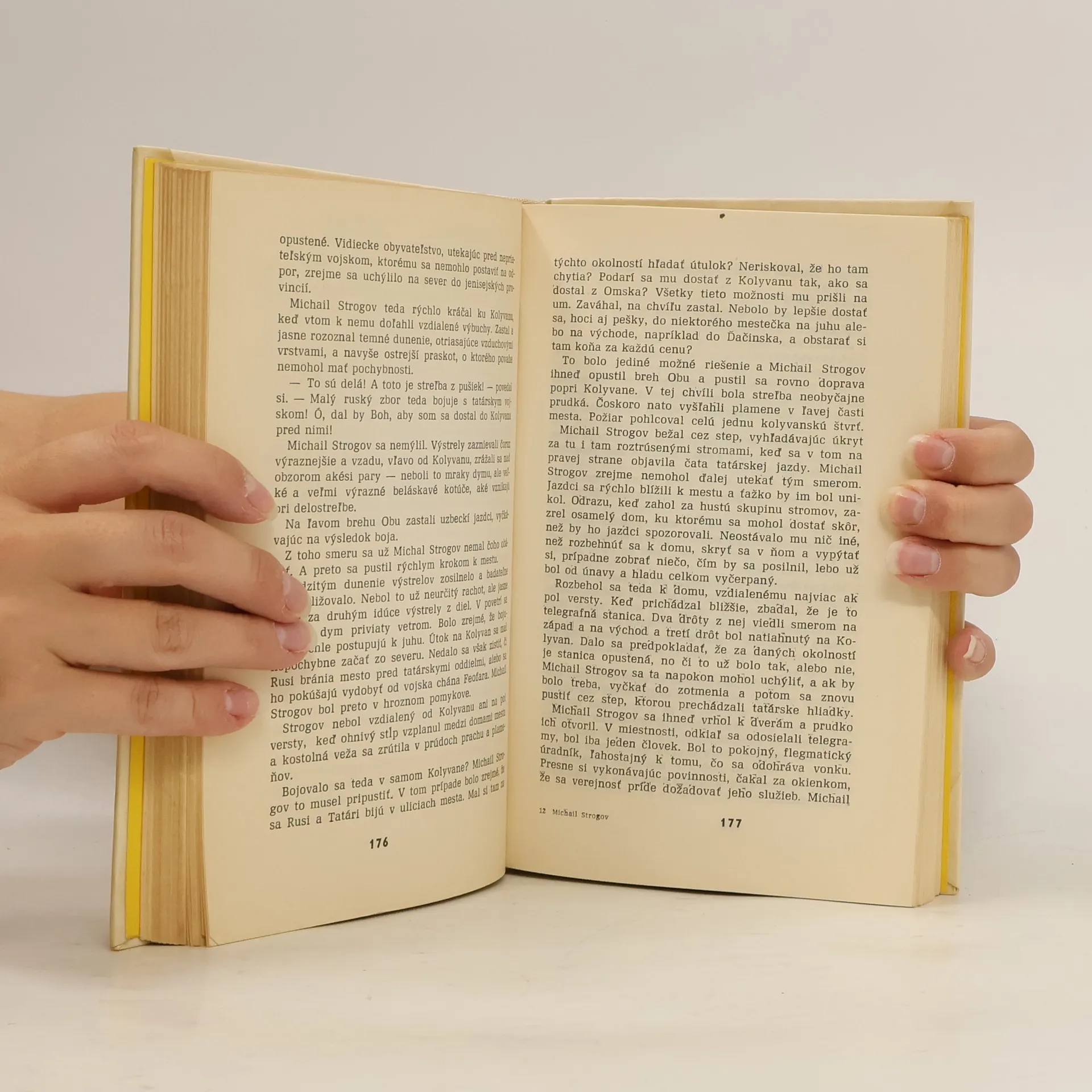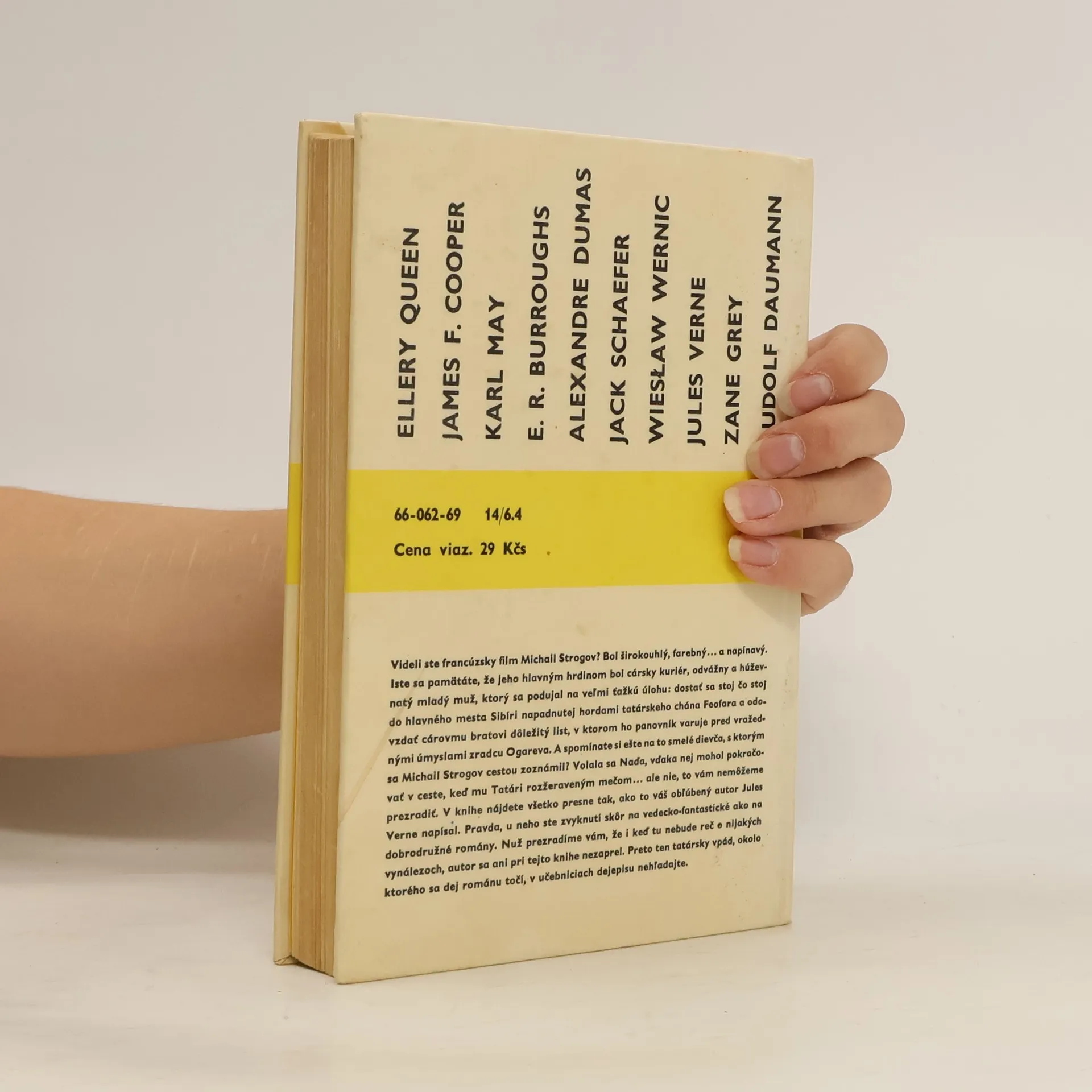 Videli ste francúzsky film Michail Strogov? Bol širokouhlý, farebný... a napínavý. Iste sa pamätáte, že jeho hlavným hrdinom bol cársky kuriér, odvážny a húževnatý mladý muž, ktorý sa podujal na veľmi ťažkú úlohu: dostať sa stoj čo stoj do hlavného mesta Sibíri napadnutej hordami tatárskeho chána Feofara a odovzdať cárovmu bratovi dôležitý list, v ktorom ho panovník varuje pred vražednými úmyslami zradcu Ogareva. A spomínate si ešte na to smelé dievča, s ktorým sa Michail Strogov cestou zoznámil? Volala sa Naďa, vďaka nej mohol pokračovať v ceste, keď mu Tatári rozžeraveným mečom... ale nie, to vám nemôžeme prezradiť. V knihe nájdete všetko presne tak, ako to váš obľúbený autor Jules Verne napísal. Pravda, u neho ste zvyknutí skôr na vedecko-fantastické ako na dobrodružné romány. Nuž prezradíme vám, že i keď tu nebude reč o nijakých vynálezoch, autor sa ani pri tejto knihe nezaprel. Preto ten tatársky vpád, okolo ktorého sa dej románu točí, v učebniciach dejepisu nehľadajte. Vydanie prvé
