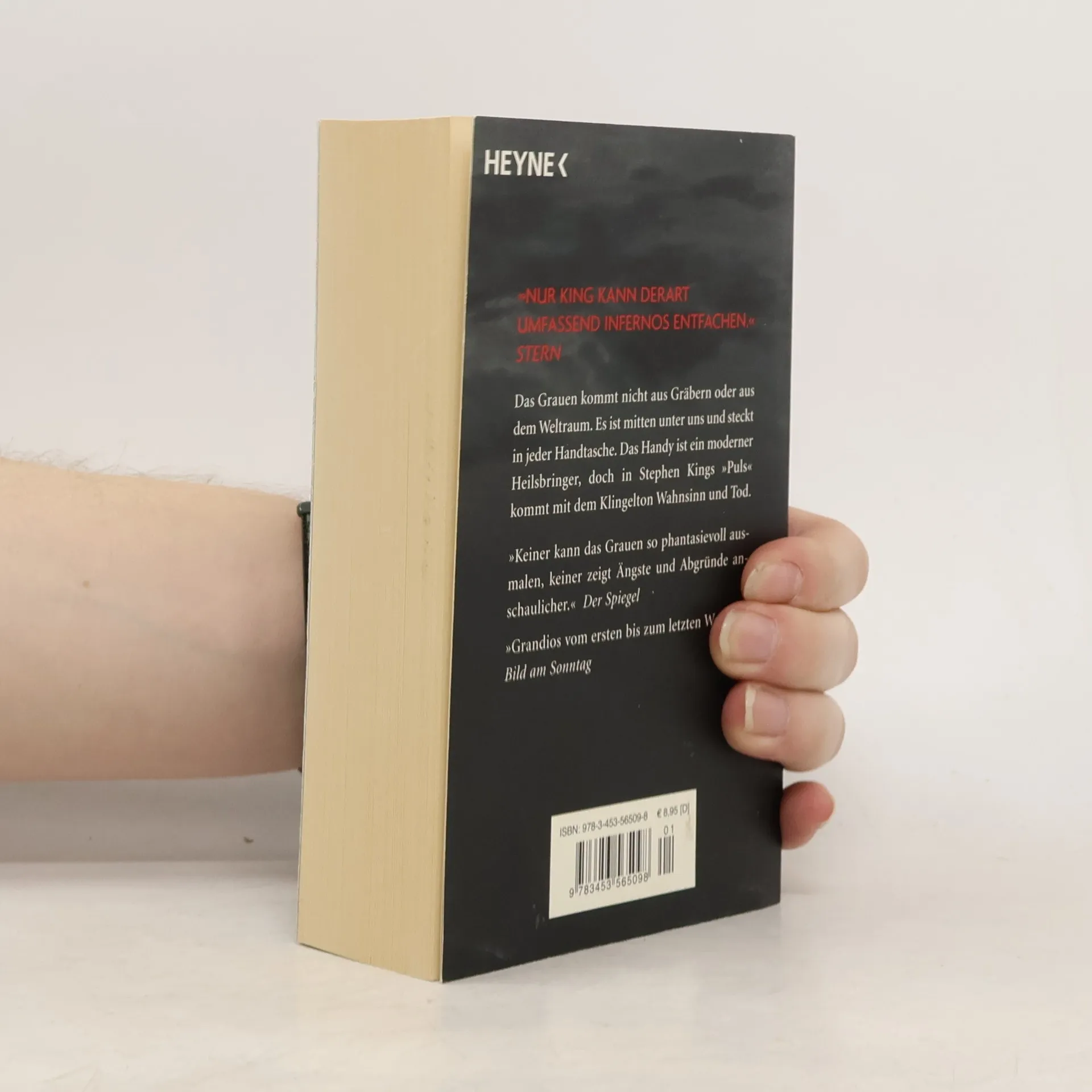 Der Horror hat eine neue Dimension Das Grauen kommt nicht aus Gräbern oder aus dem Weltraum. Es ist mitten unter uns und steckt in jeder Handtasche. Das Handy ist ein moderner Heilsbringer, doch in Stephen Kings „Puls“ kommen mit dem Klingelton Wahnsinn und Tod.Clayton Riddell ist geschäftlich in Boston, hat schon Geschenke für seine Familie besorgt und möchte sich vor der Heimfahrt gerade bei einem Straßenhändler ein Eis kaufen, als die Welt untergeht. Geschäftsleute, Schüler, Busfahrer, alle Menschen, die in diesem Moment ein Handy am Ohr haben, laufen wie auf einen geheimen Befehl hin Amok, fallen übereinander her, schlachten sich gegenseitig ab, stürzen sich ins Verderben. Irgendwie können Clay, ein kleiner Mann mit Schnurrbart und ein junges Mädchen, das beinahe von ihrer Mutter umgebracht worden wäre, sich in ein Hotel retten. Sie sind völlig abgeschnitten von der Außenwelt. Clay will unbedingt herausfinden, wie es um seine Frau und vor allem um seinen Sohn Johnny steht, der gerade in der Schule war, als der mörderische Irrsinn losging. Zu ihm muss Clay Kontakt aufnehmen, bevor ein anderer es per Handy tut. Die Suche nach Johnny wird zur Schreckensmission durch eine apokalyptische Welt.