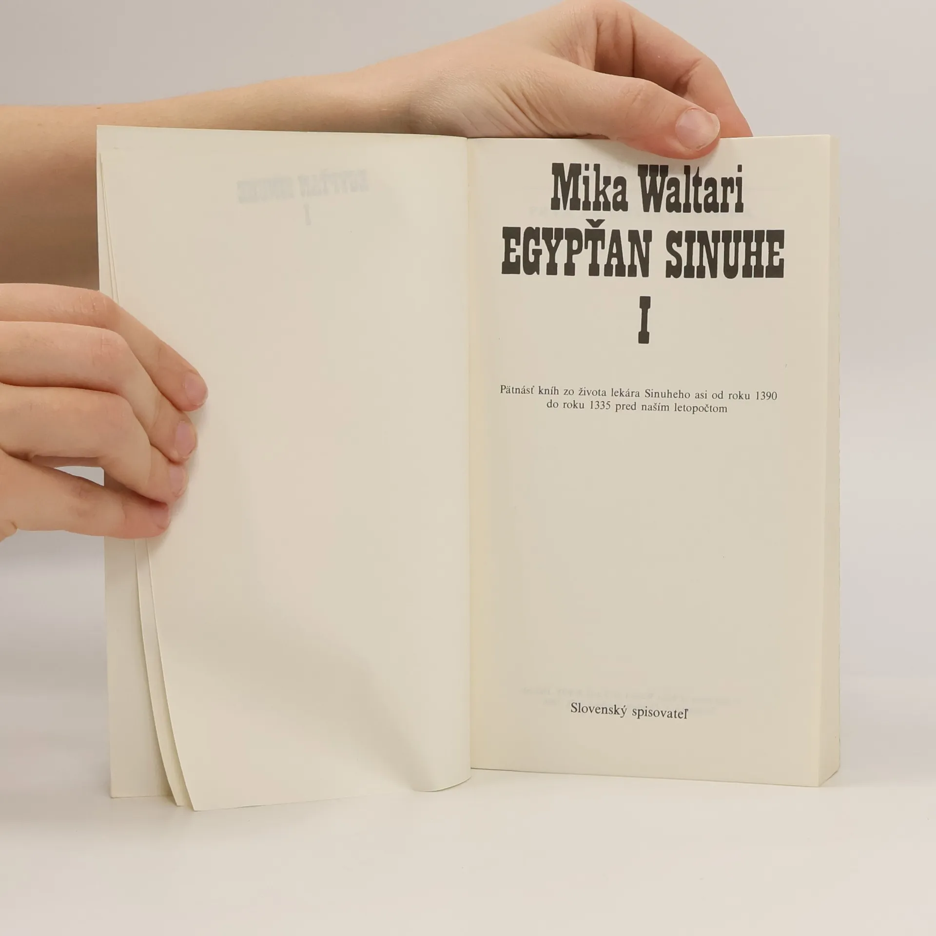 Pätnásť kníh Egypťana Sinuheho uvádza čitateľa do čias starého Egypta v rokoch 1390 až 1335 pred naším letopočtom. Múdry a vzdelaný lekár v štvrti chudobných prijal malého najdúcha, dal mu meno Sinuhe, zasvätil ho do tajomstiev liečenia a okrem všetkej starostlivosti ho zahrnul aj láskou.No Sinuhe, ktorého už aj meno predurčuje k osamelosti, postupne odvrhuje všetkých, čo ho milujú, až sa dostane na dvor faraóna Echnatona a stane sa jeho dôverníkom. Po faraónovej smrti však Sinuhe upadne do nemilosti a jeho bývalý priateľ, egyptský vojvodca a uchádzač o faraónsky stolec, ho pošle do vyhnanstva. Tu starnúci Sinuhe píše svoje pamäti, aby sám pred sebou ospravedlnil činy, ktorých sa dopustil často proti vlastnej vôli a vlastnému presvedčeniu, len zo slabosti a neschopnosti vzoprieť sa brutalite vládychtivých mocnárov. Množstvo exotických zážitkov, plnokrvných postáv historických udalostí udržiava čitateľa v ustavičnom napätí. Dielo Miku Waltariho preslávilo tohto fínskeho spisovateľa, narodeného r. 1908, po celom svete. Známy je divadelnými hrami a v posledných rokoch aj detektívkami, ale najznámejšie jednako zostávajú jeho historické romány: Egypťan Sinuhe, Riman Minutus a Nesmrteľný Turms.