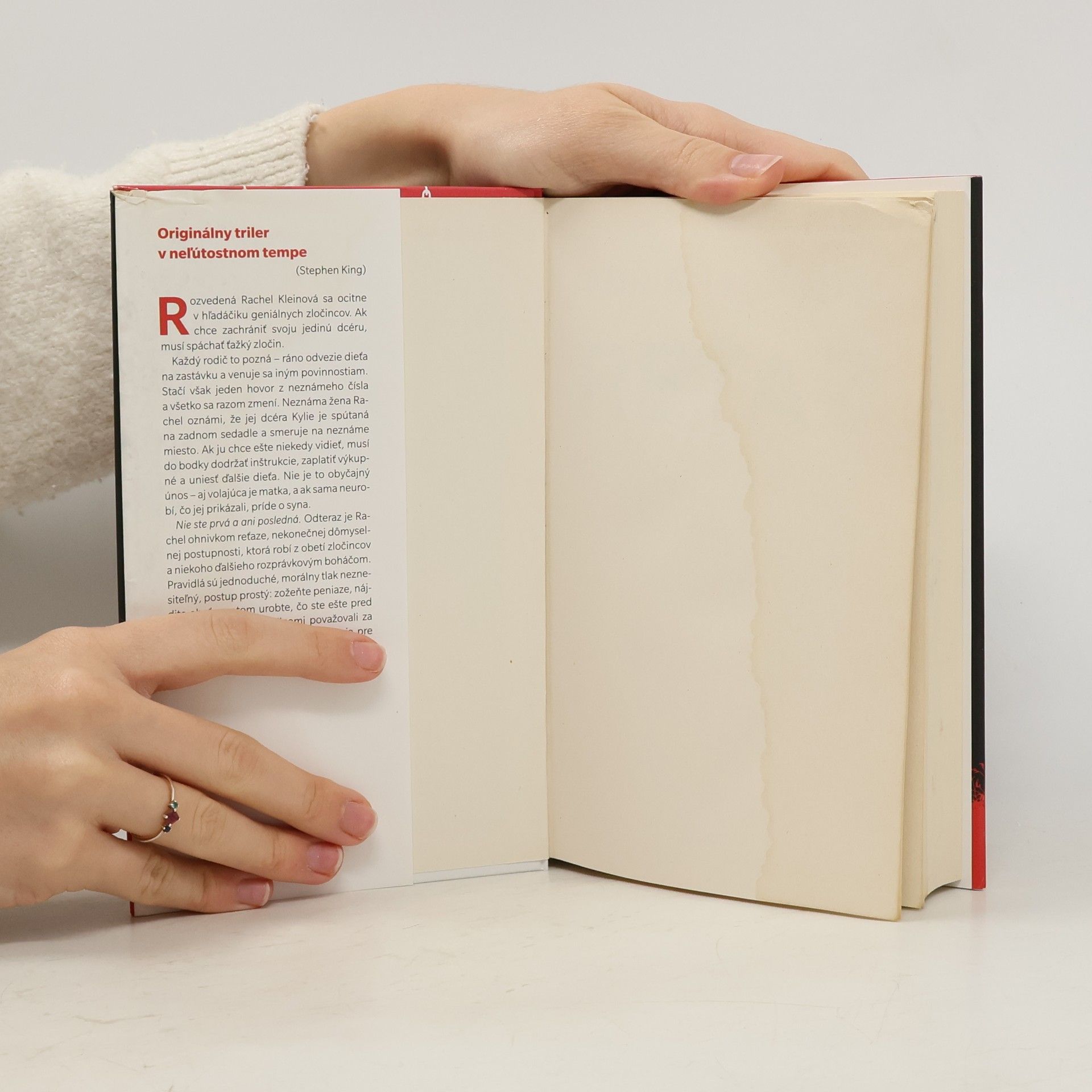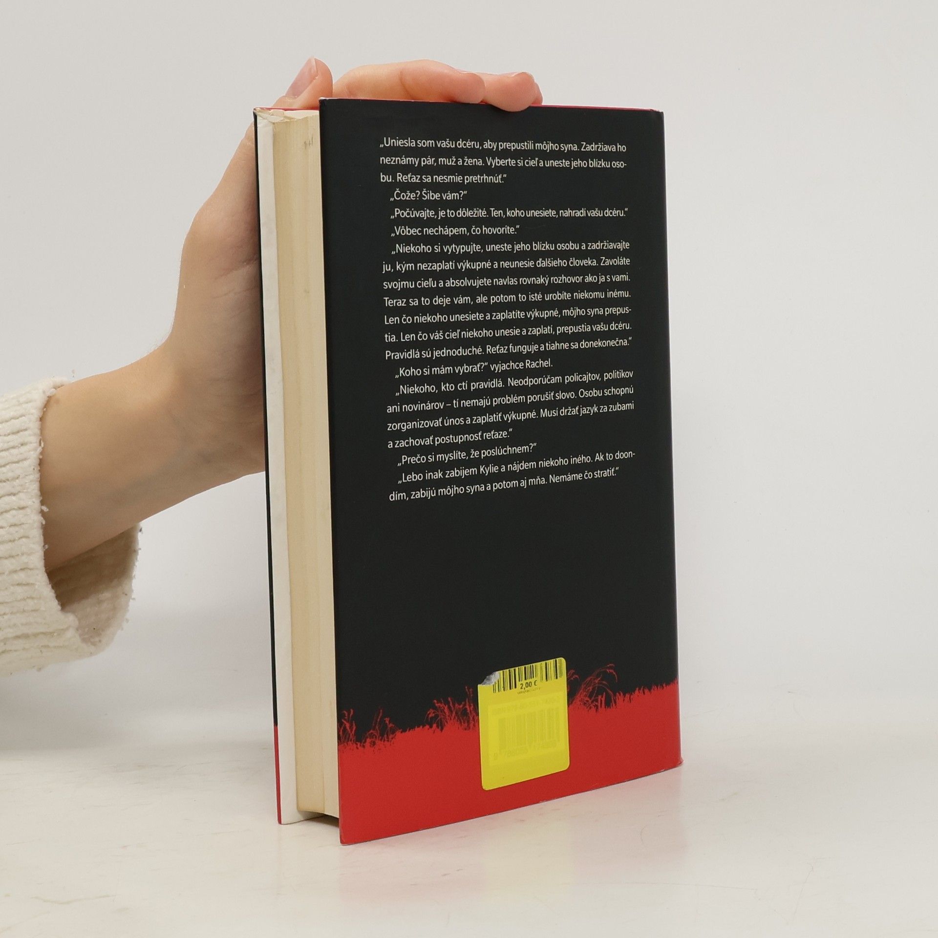 Rachel pred chvíľou vysadila svoju jedinú dcéru Kylie na autobusovej zastávke a mieri na onkologické vyšetrenie. Vzápätí jej zavolá neznáma žena a vysvetlí situáciu. Niekto im uniesol syna, a ak ho chcú späť, musia uniesť iné dieťa a donútiť jeho rodičov k rovnakému zločinu. Voľba padla na Kylie. V tejto chvíli ju väznia na neznámom mieste. Rachel má dvadsaťštyri hodín, aby si vytypovala vhodnú obeť, uniesla ju a prinútila jej blízkych postupovať rovnako. V opačnom prípade Kylie zomrie. Odteraz je Rachel ohnivkom reťaze siahajúcej hlboko do minulosti. Tá sa za žiadnych okolností nesmie pretrhnúť.