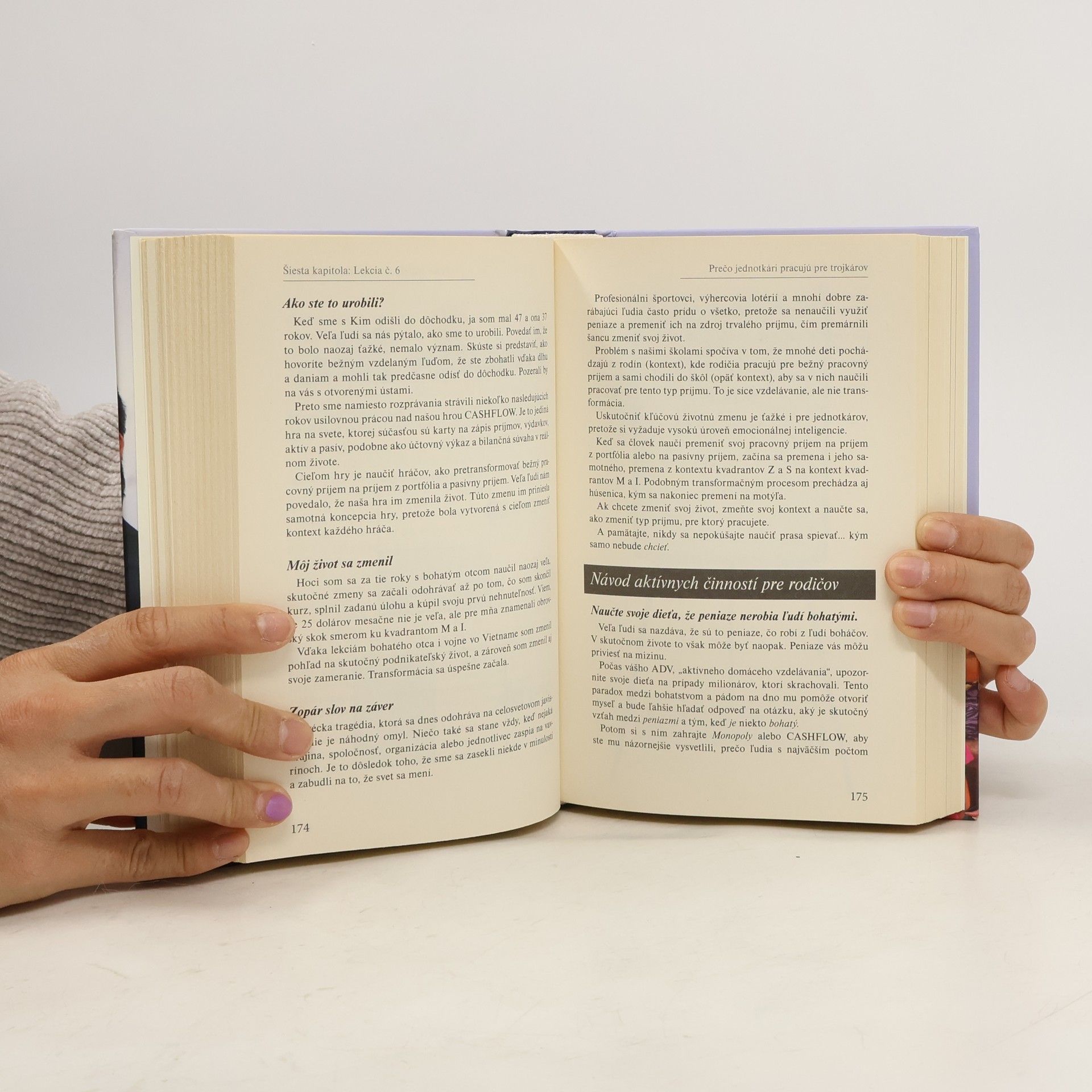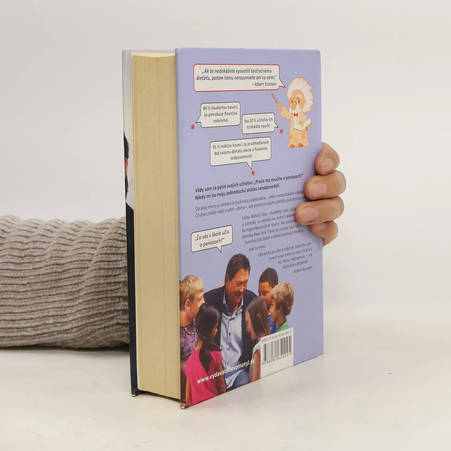 84% študentov hovorí, že potrebuje finančné vzdelanie. Iba 20% učiteľov ich to dokáže naučiť. 91% rodičov hovorí, že je odhodlaných dať svojmu dieťaťu lekcie o finančnej zodpovednosti. Vždy som sa pýtal svojich učiteľov: „Prečo ma neučíte o peniazoch?“ Nikdy mi na moju jednoduchú otázku neodpovedali. Do akej miery je dnešná kríza krízou vzdelávania... alebo nedostatkom vzdelania? Čo dnes môže rodič urobiť – doma –, aby poskytol svojmu dieťaťu počiatočnú výhodu? Táto kniha je určená rodičom, ktorí chcú pripraviť svoje dieťa na svet, na ktorý ho školy nepripravia – na skutočný svet peňazí.