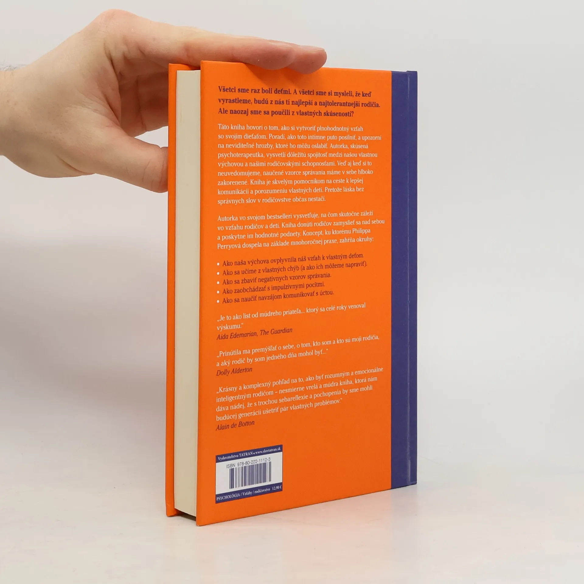 Všetci sme raz boli deťmi. A všetci sme si mysleli, že keď vyrastieme, budú z nás tí najlepší a najtolerantnejší rodičia. Ale naozaj sme sa poučili z vlastných skúseností? Táto kniha hovorí o tom, ako si vytvoriť plnohodnotný vzťah so svojím dieťaťom. Poradí, ako toto intímne puto posilniť, a upozorní na neviditeľné hrozby, ktoré ho môžu oslabiť. Autorka, skúsená psychoterapeutka, vysvetlí dôležitú spojitosť medzi našou vlastnou výchovou a našimi rodičovskými schopnosťami. Veď aj keď si to neuvedomujeme, naučené vzorce správania máme v sebe hlboko zakorenené. Kniha je skvelým pomocníkom na ceste k lepšej komunikácii a porozumeniu vlastných detí. Pretože láska bez správnych slov v rodičovstve občas nestačí.